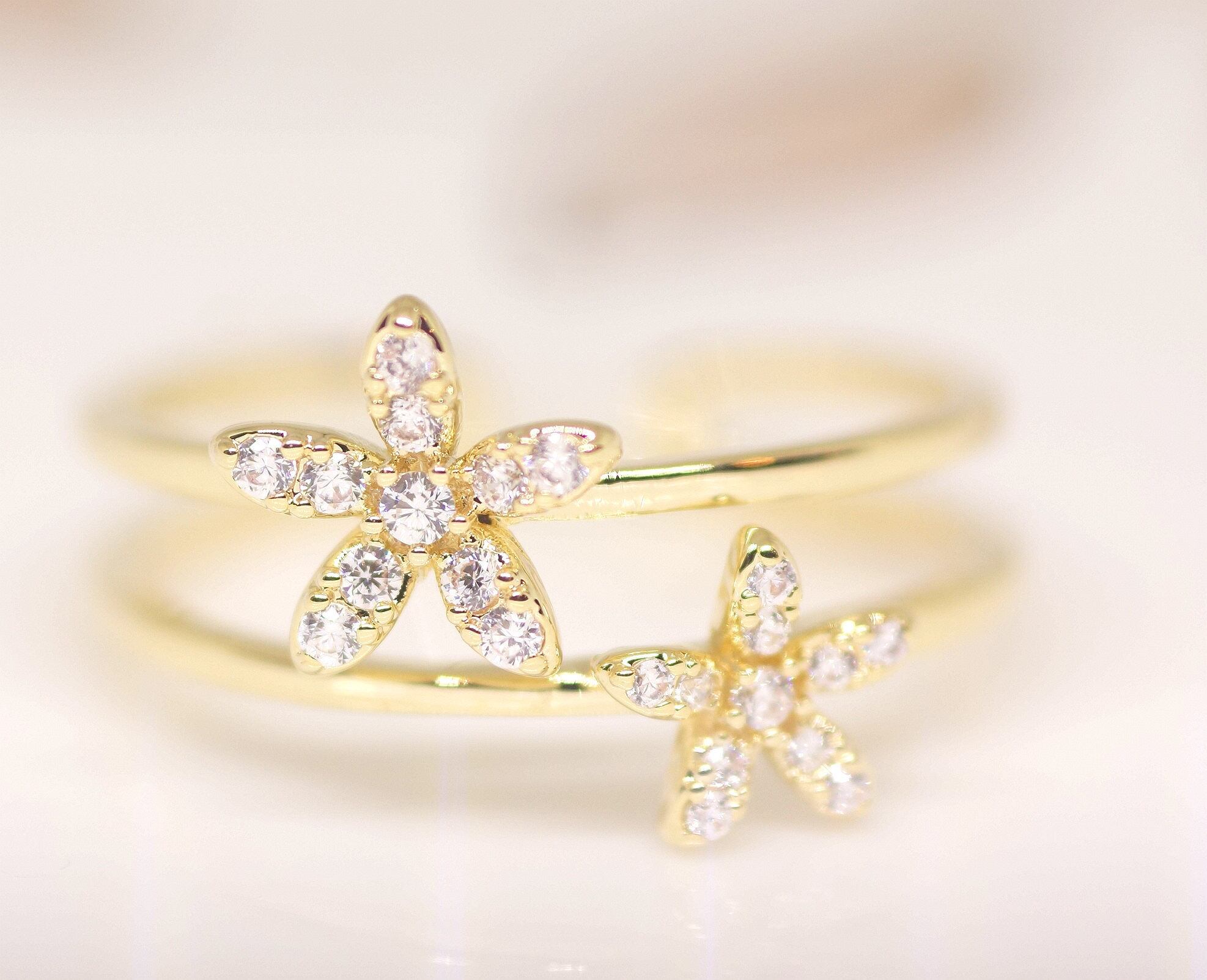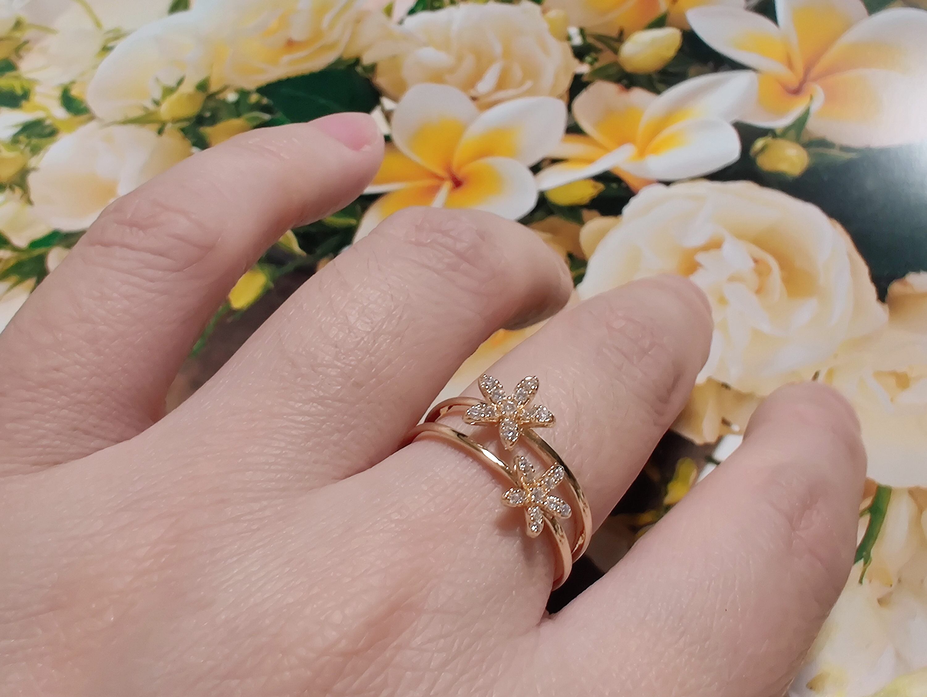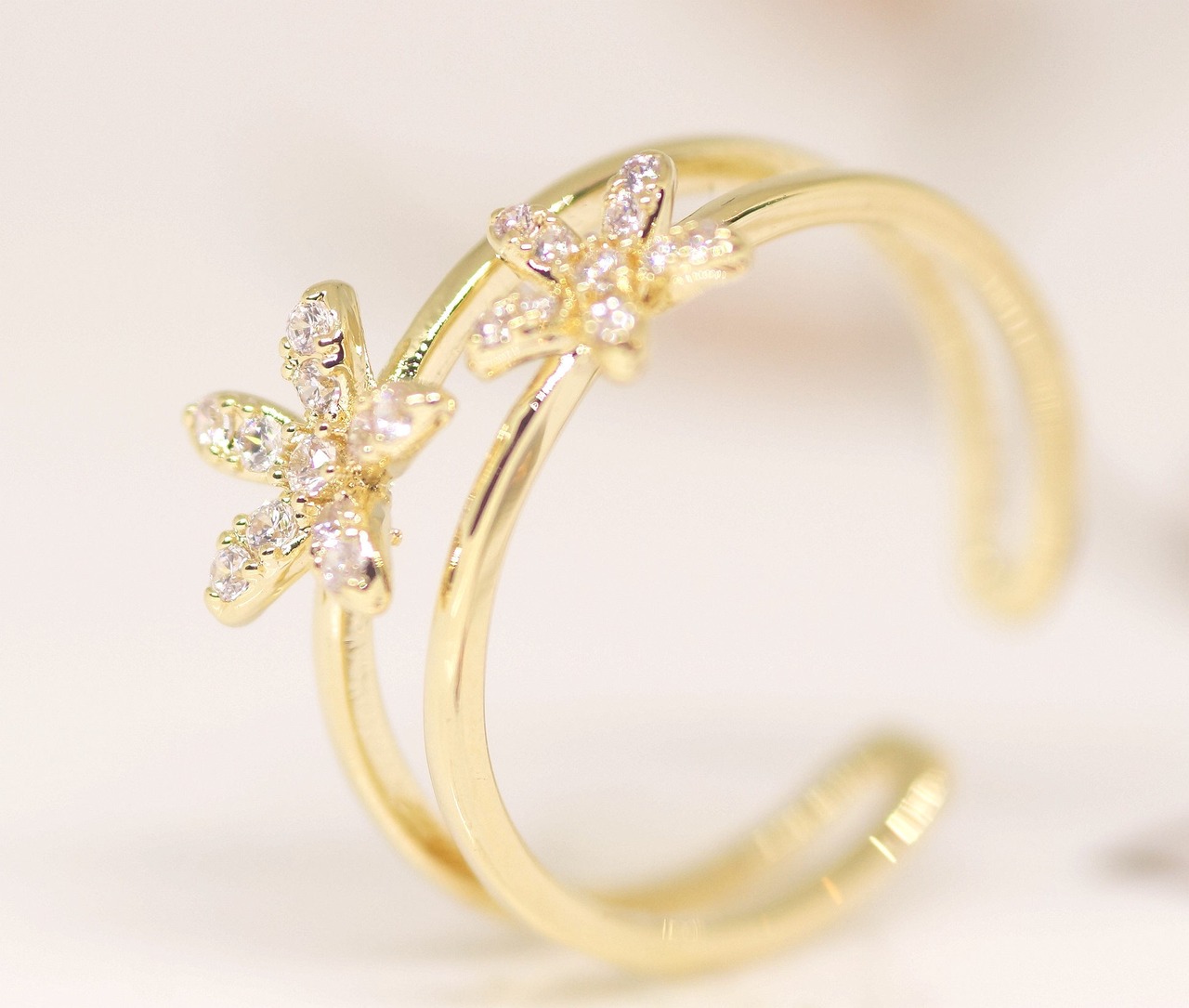 18K RGP ゴールド ダイヤ CZ フラワー リング gu1429e