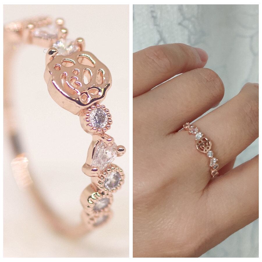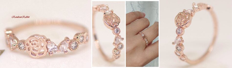 18K RGP ゴールド ダイヤ CZ バラ リング gu1434e