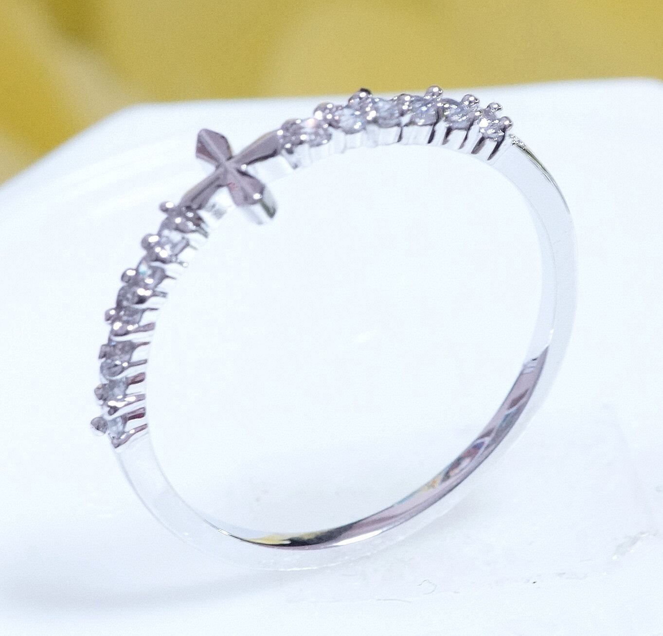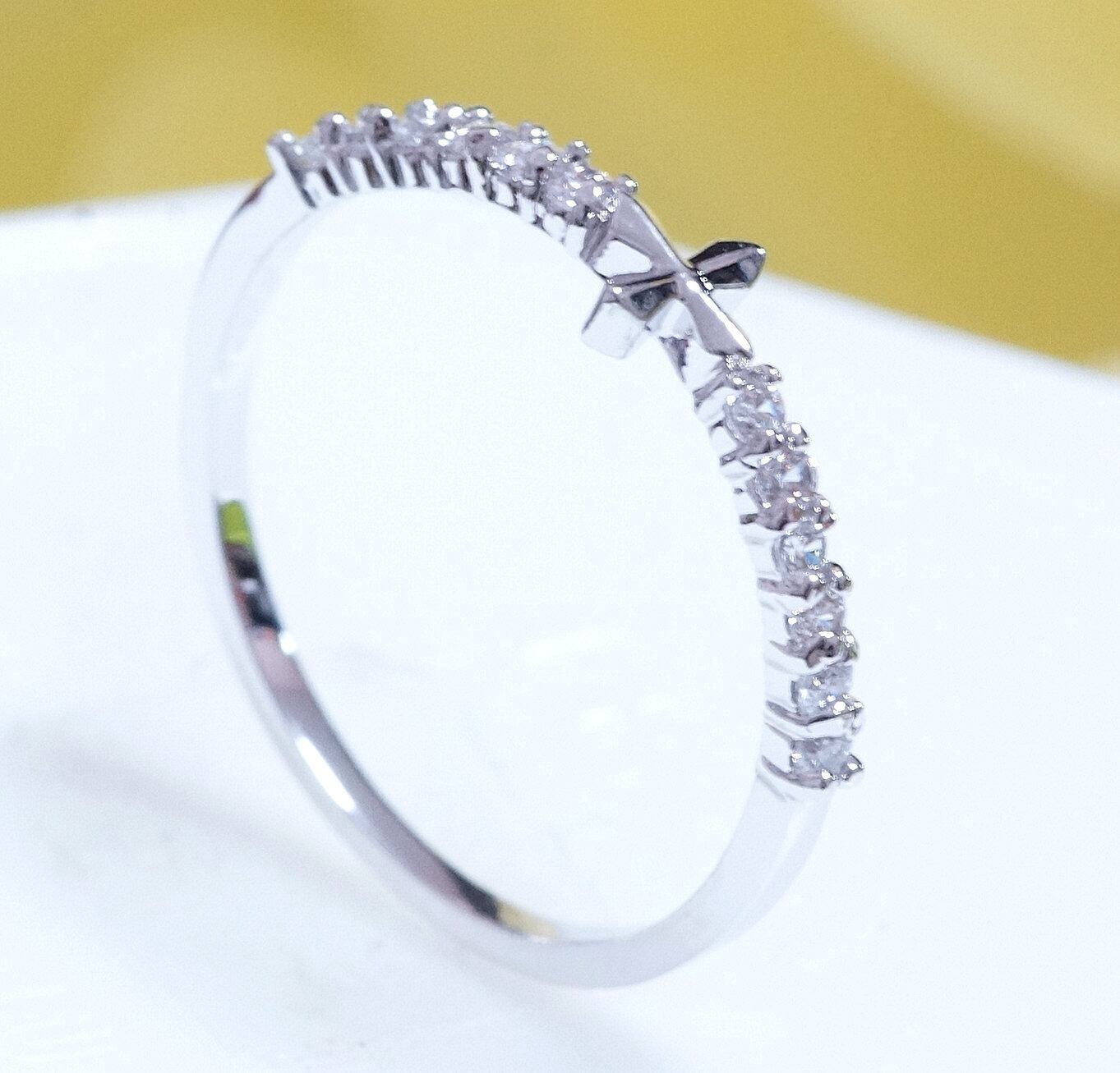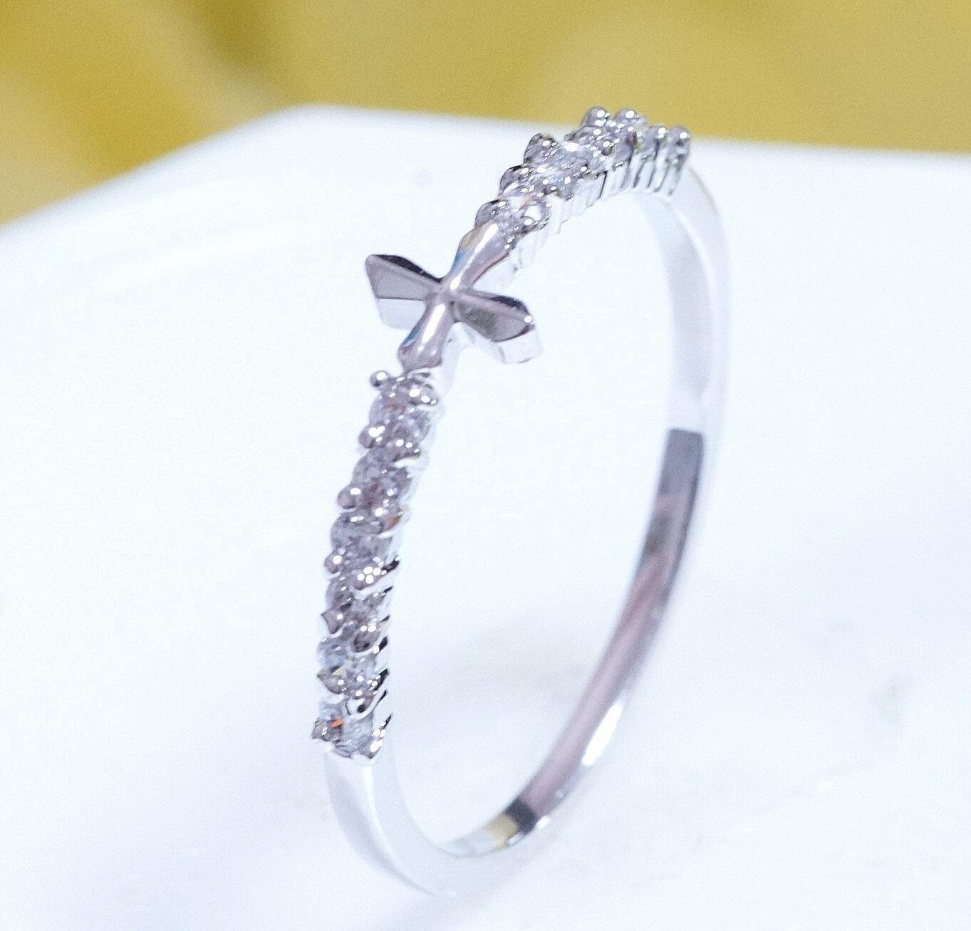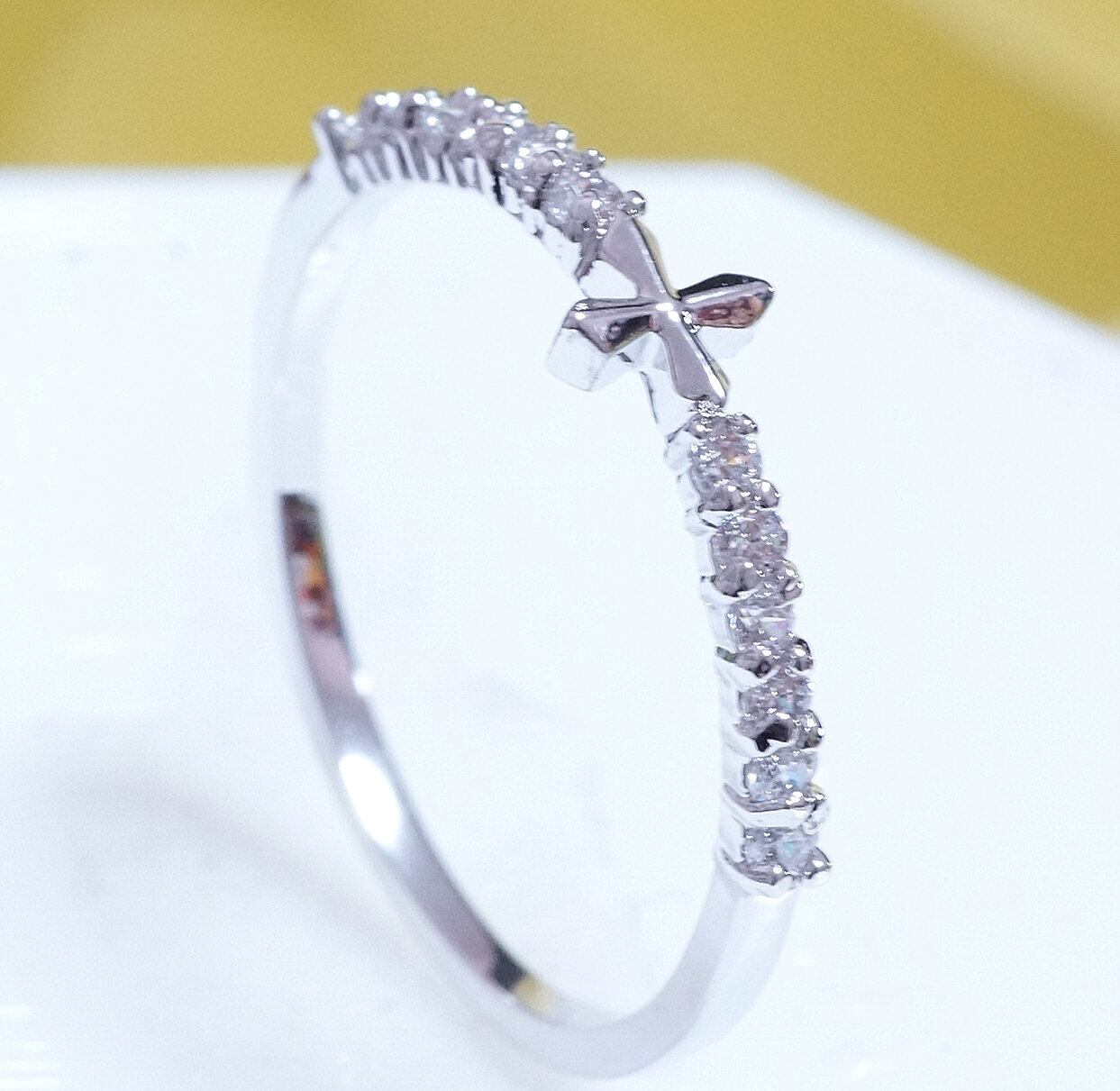 18K RGPプラチナ高級CZ クロス キュート リング yu1022e