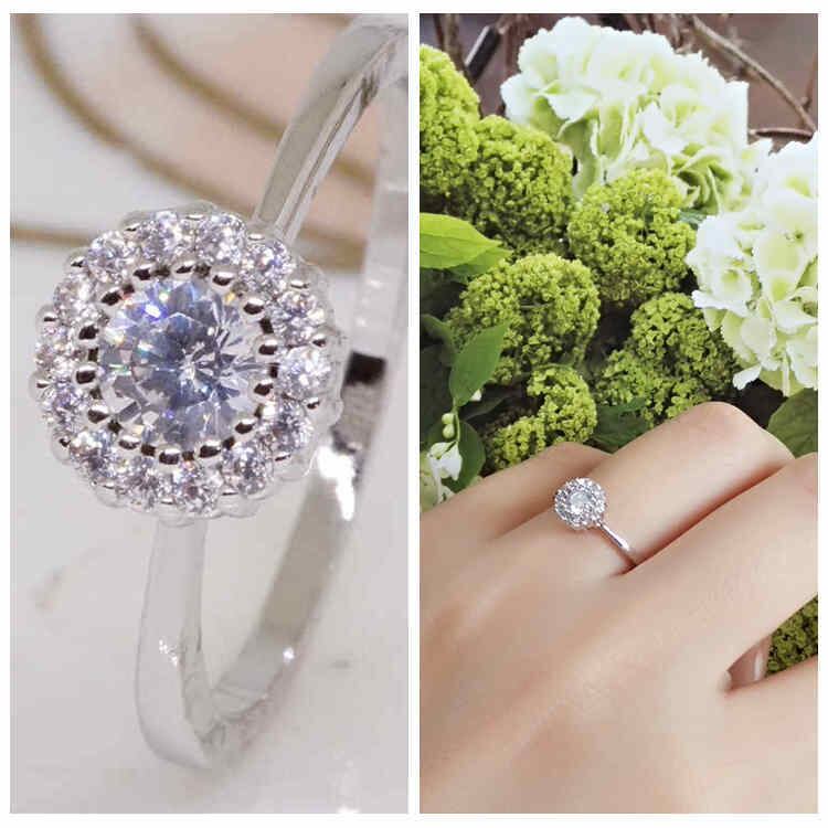 18K RGP プラチナ ダイヤ CZ 太陽花 リング yu1039e