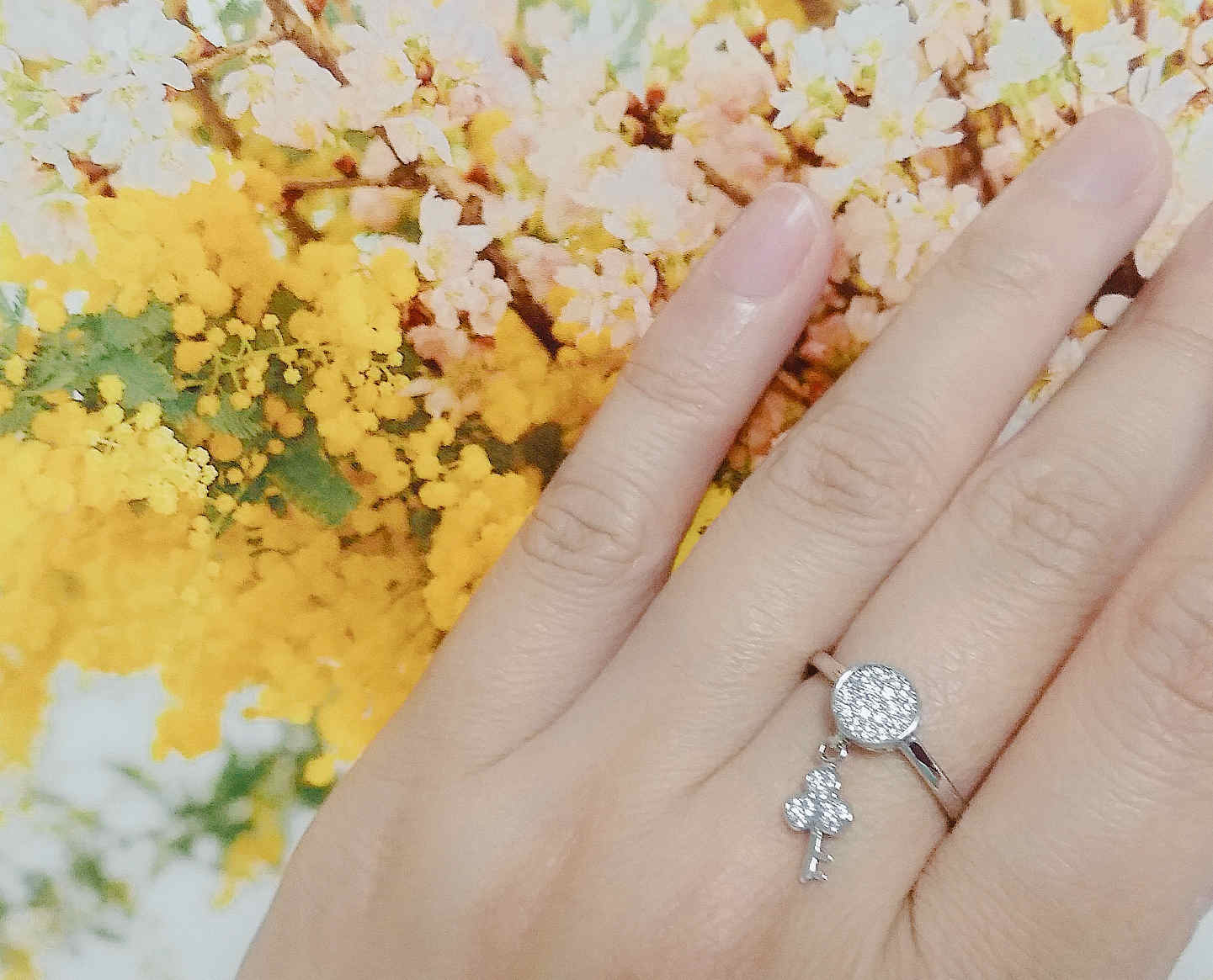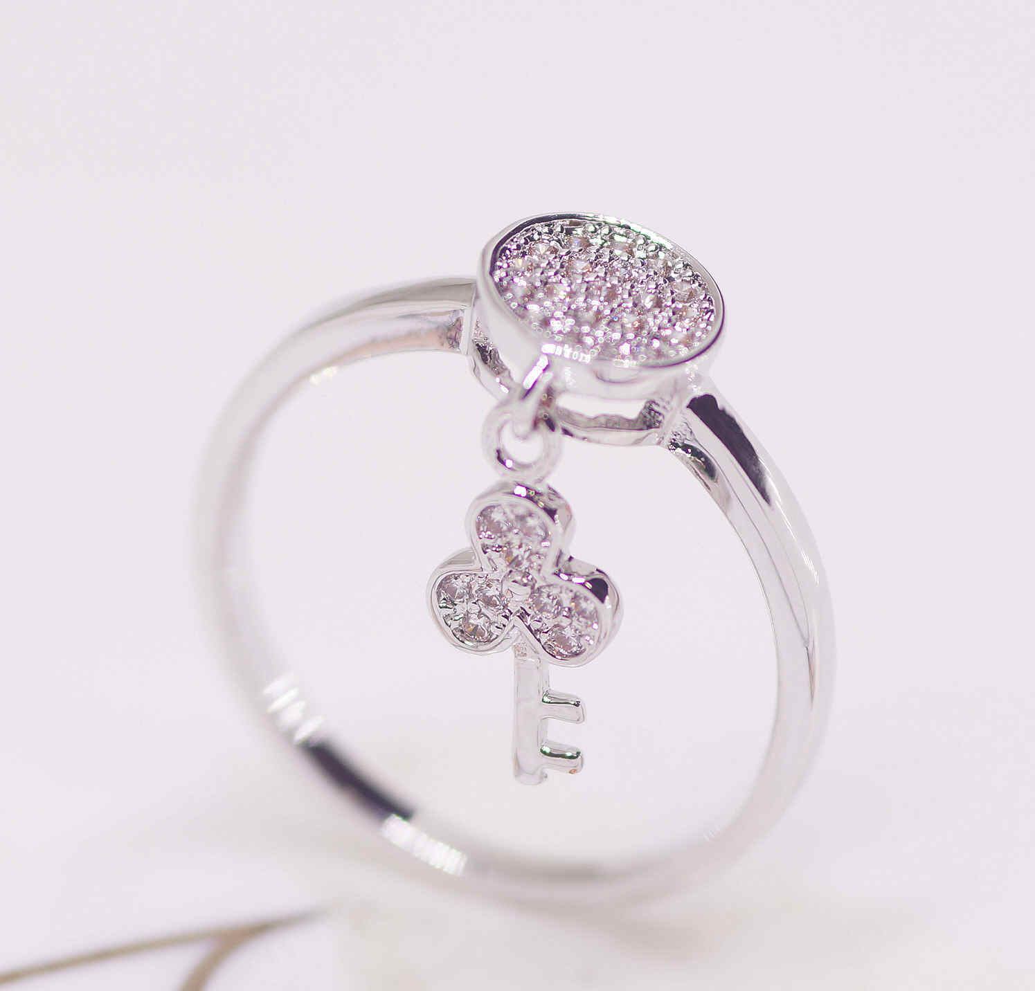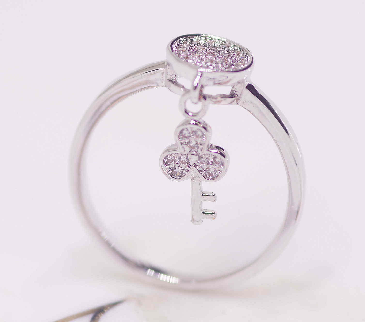 指輪 18K RGP プラチナ 高級 CZ 三つ葉 鍵 揺れ リング yu1084e