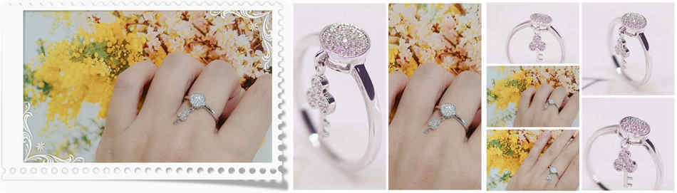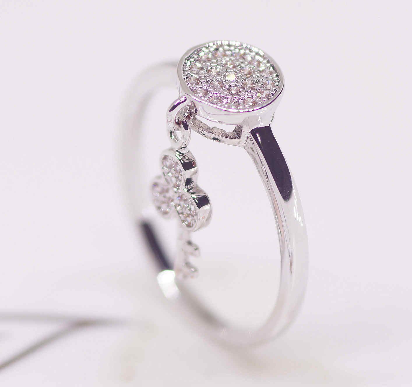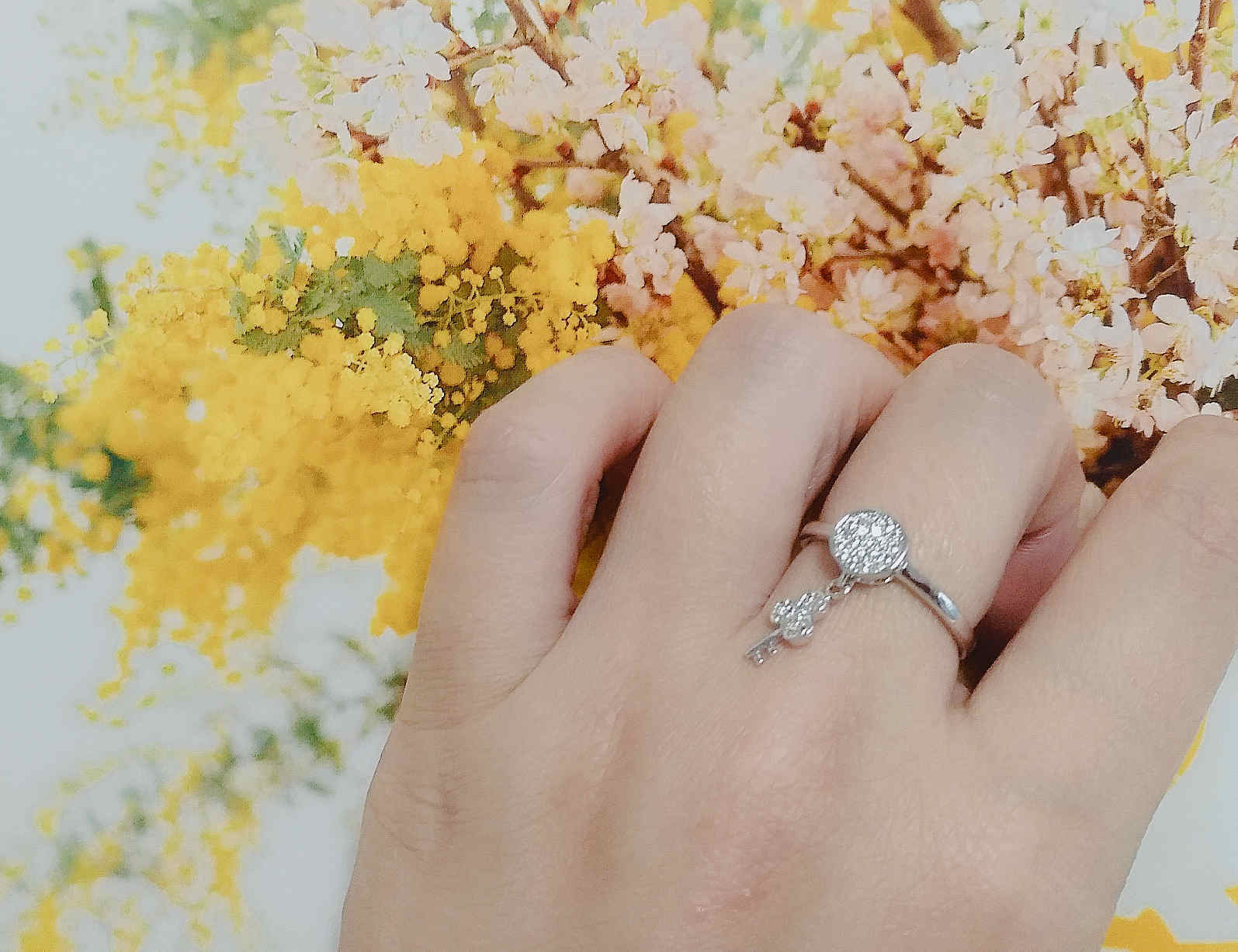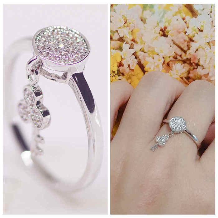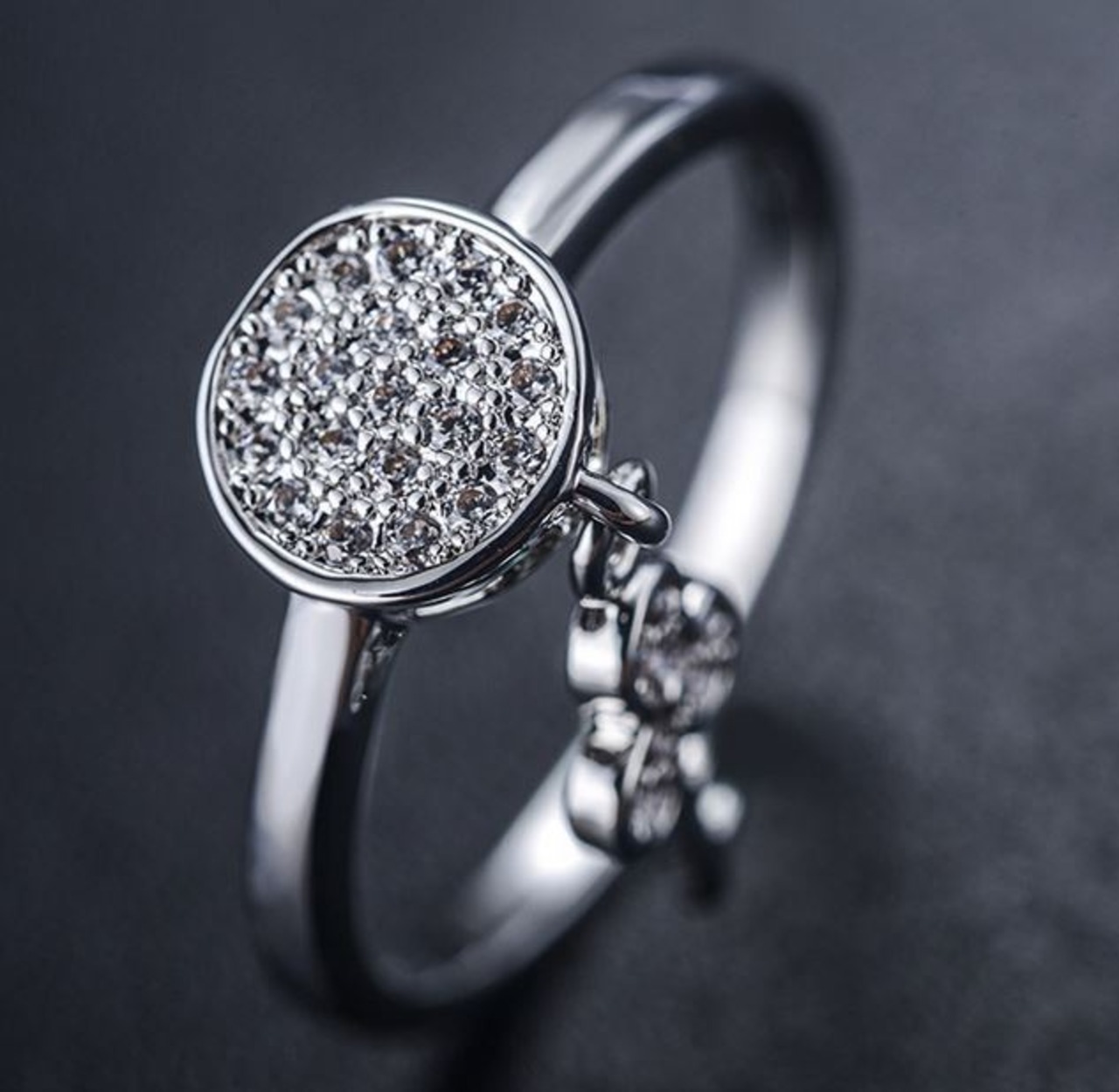指輪 18K RGP プラチナ 高級 CZ 三つ葉 鍵 揺れ リング yu1084e