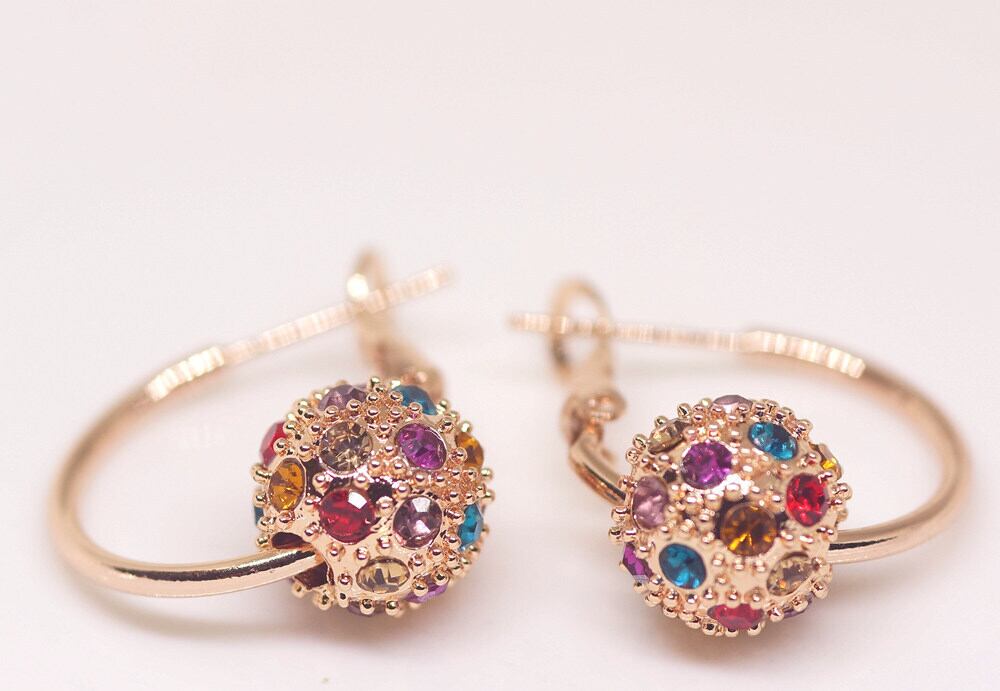 18K RGP ゴールド ダイヤ CZ リング カラーボール ピアス gp4267