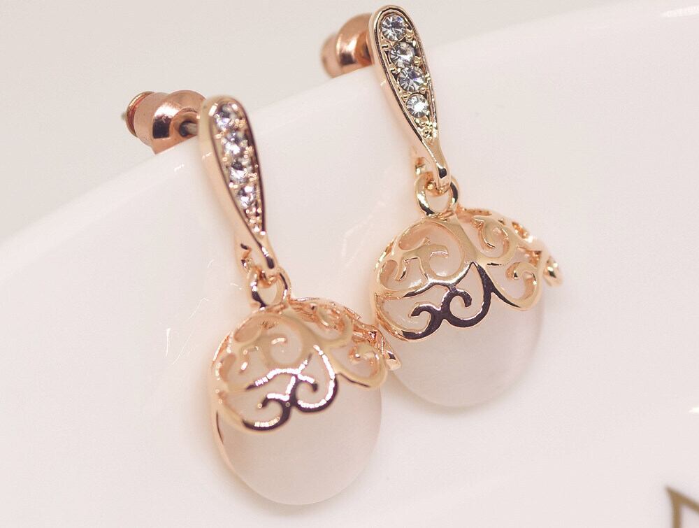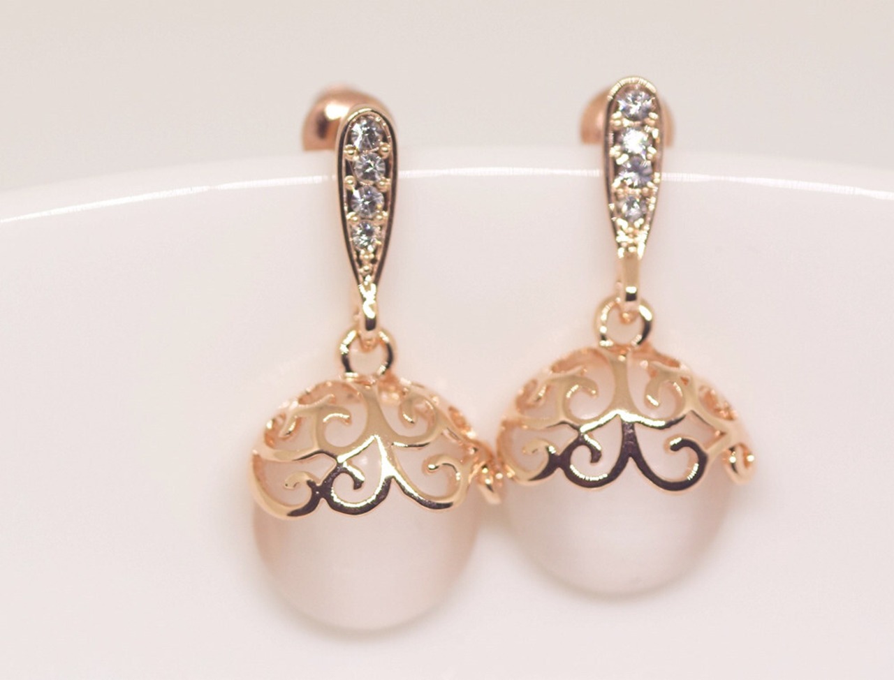 18K RGP ゴールド ダイヤ CZ キャッツアイストーン ピアス gp4950