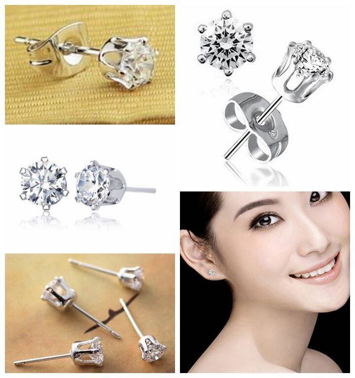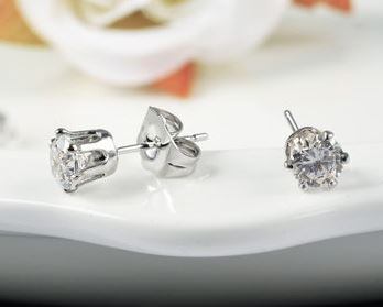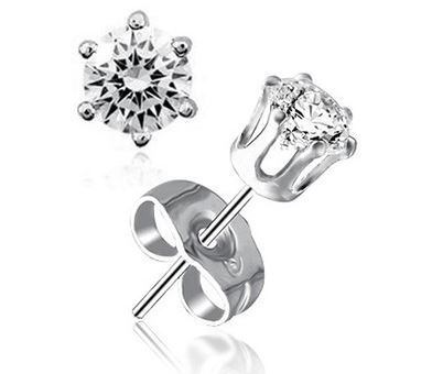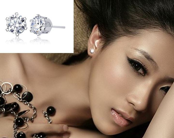 18K RGP プラチナ ダイヤ CZ 六爪 4mm 一粒 王冠 ピアス yp3542