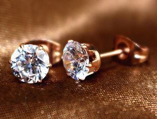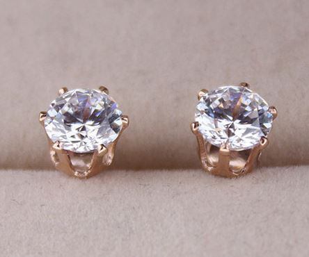 18K RGP ゴールド ダイヤ CZ 六爪 4mm 王冠 ピアス sp5154