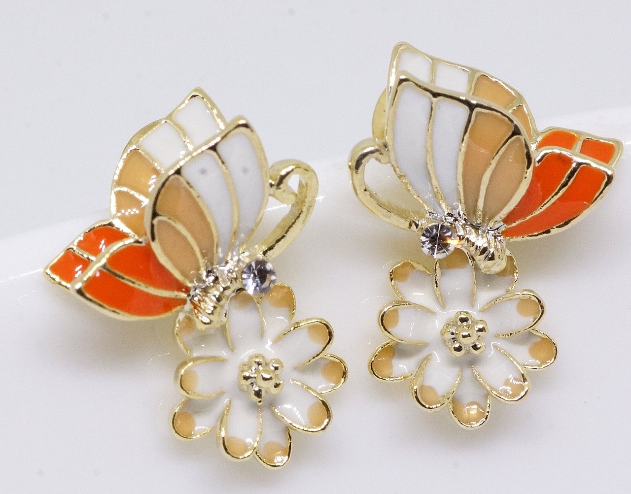 18K RGP ゴールド ダイヤ CZ t蝶々 フラワー ピアス gp5037