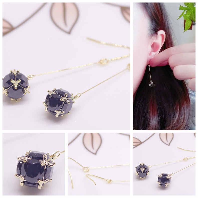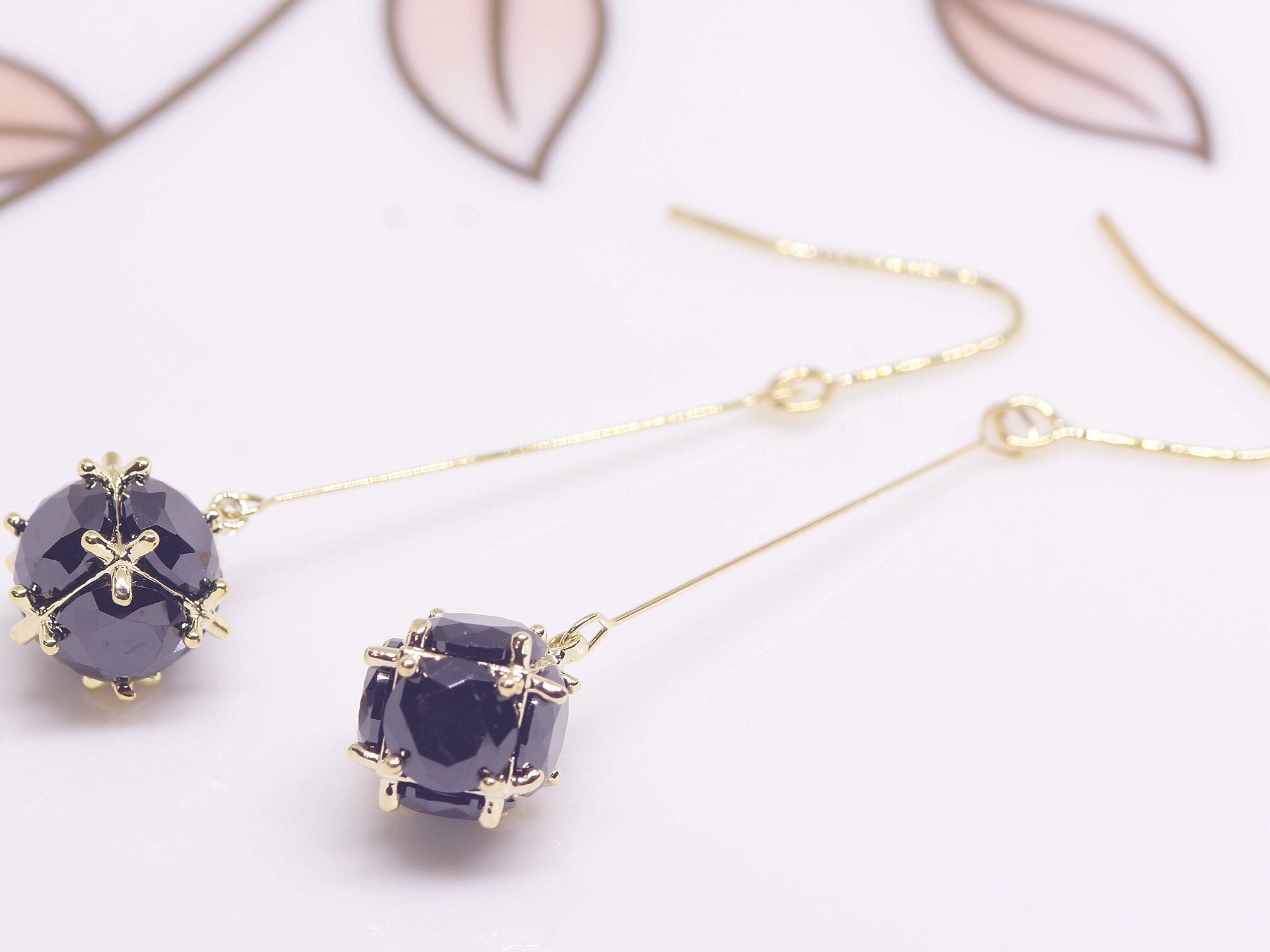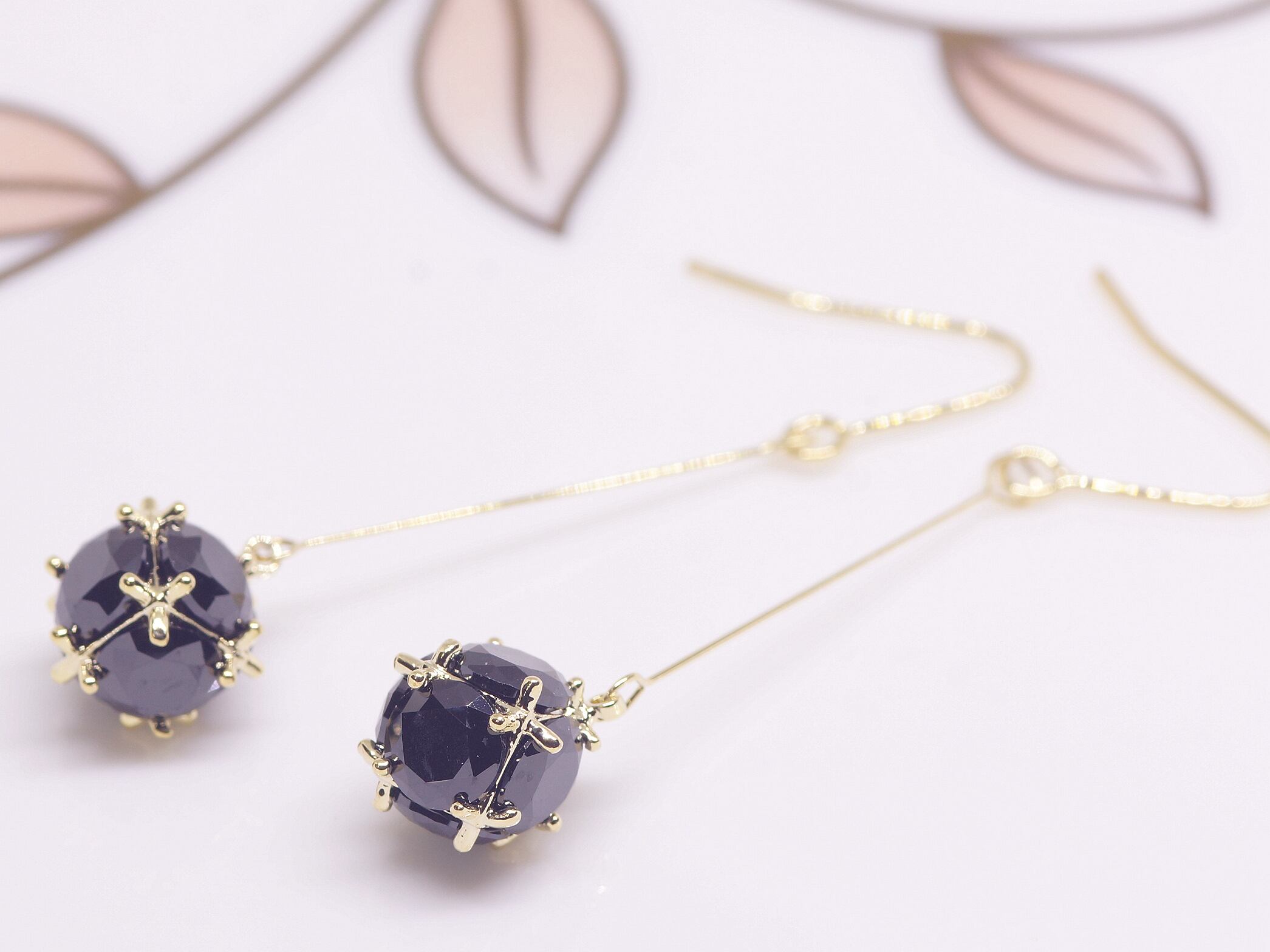 18K RGP ゴールド ブラック 彩石 揺れ ロング ピアス gp5214