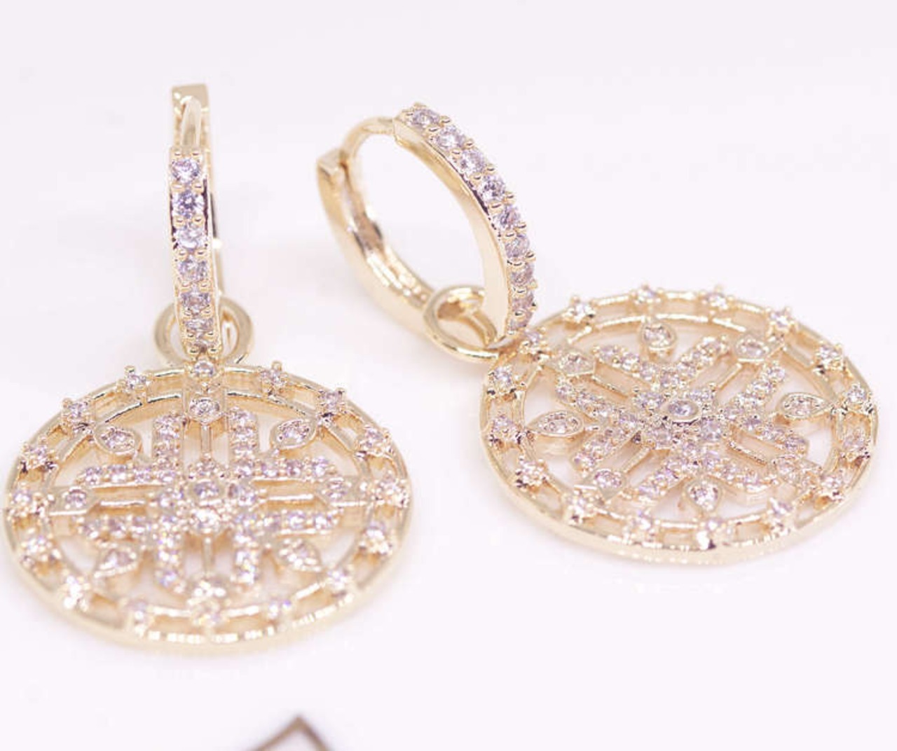 18K RGP ゴールド ダイヤ CZ リング フラワー ピアス gp5234