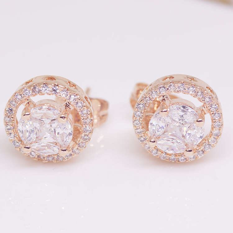 18K RGP ゴールド ダイヤ CZ 一粒 フラワー ピアス gp5237