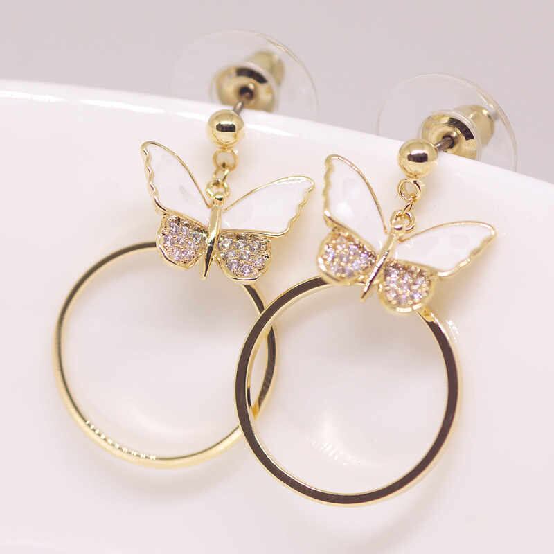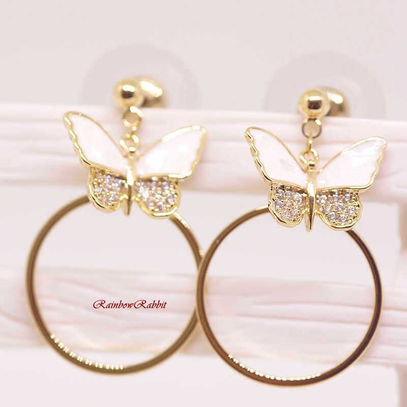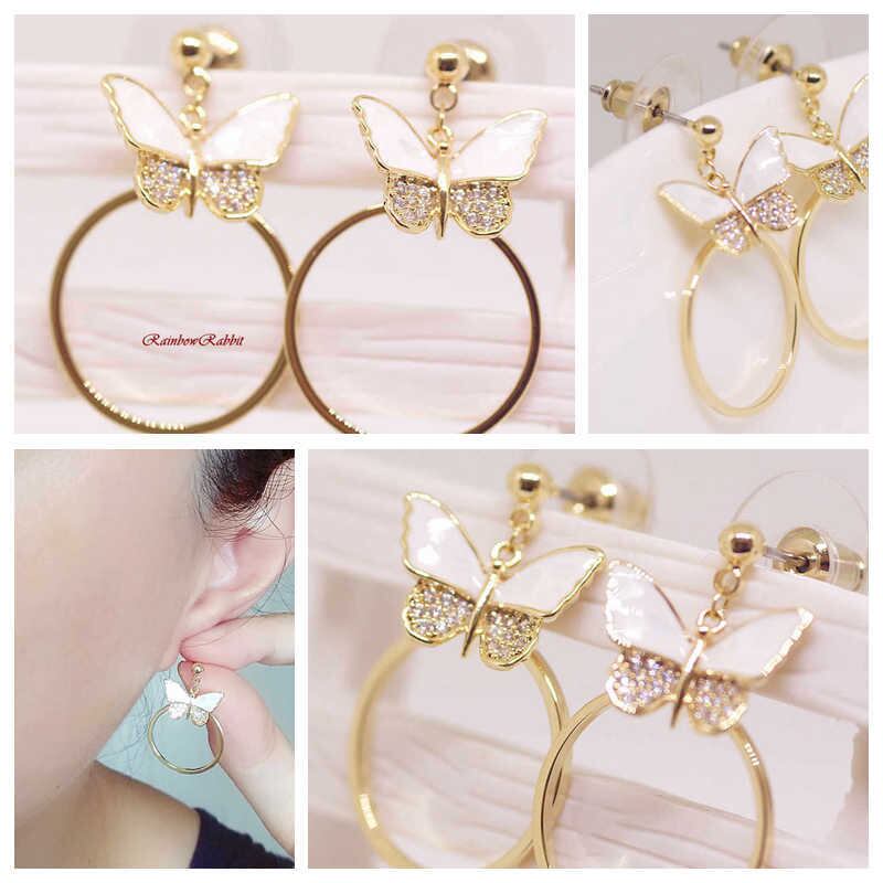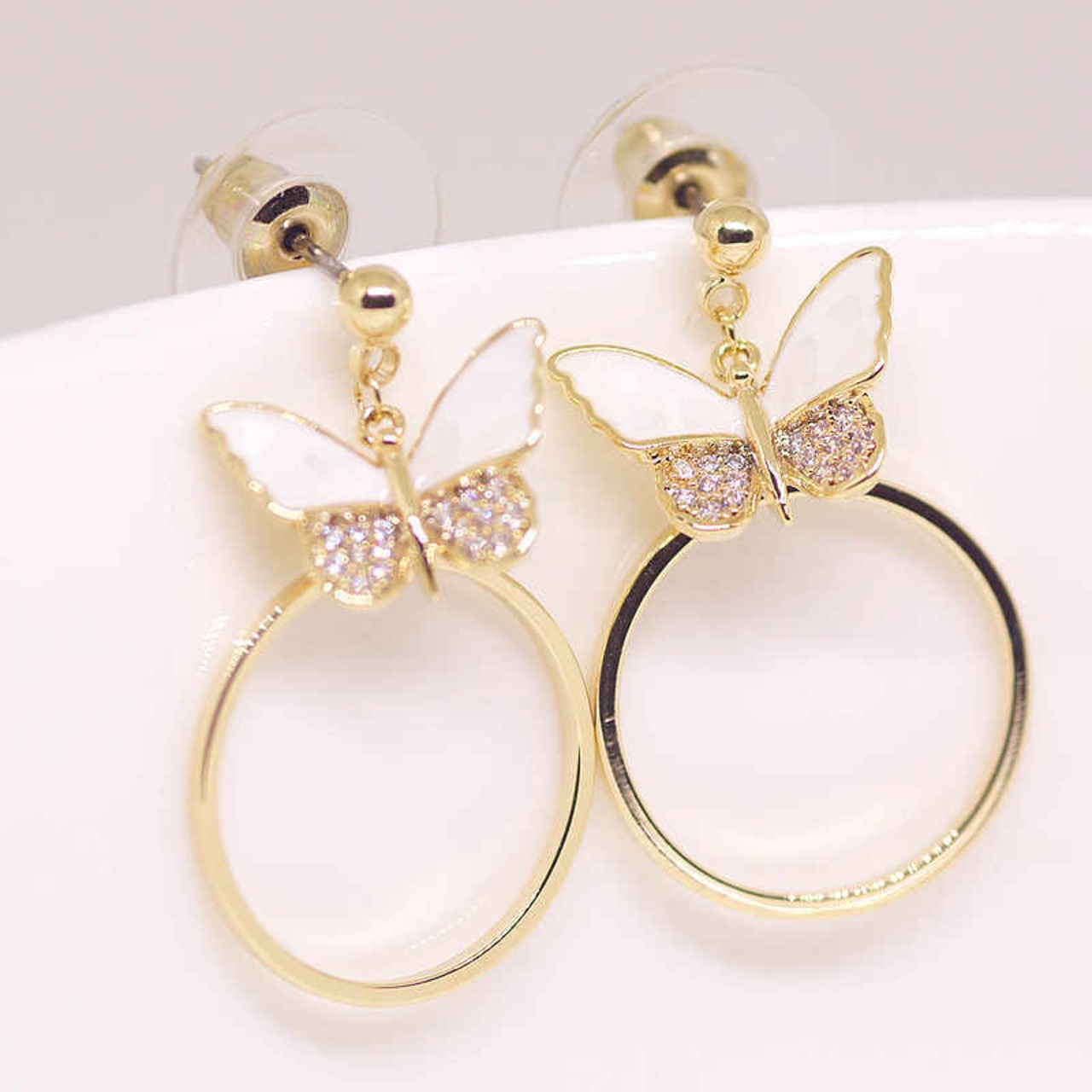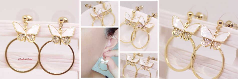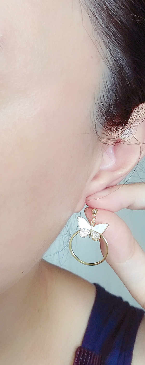 18K RGP ゴールド ダイヤ CZ 蝶々 貝殻 リング ピアス gp5247
