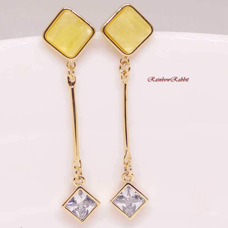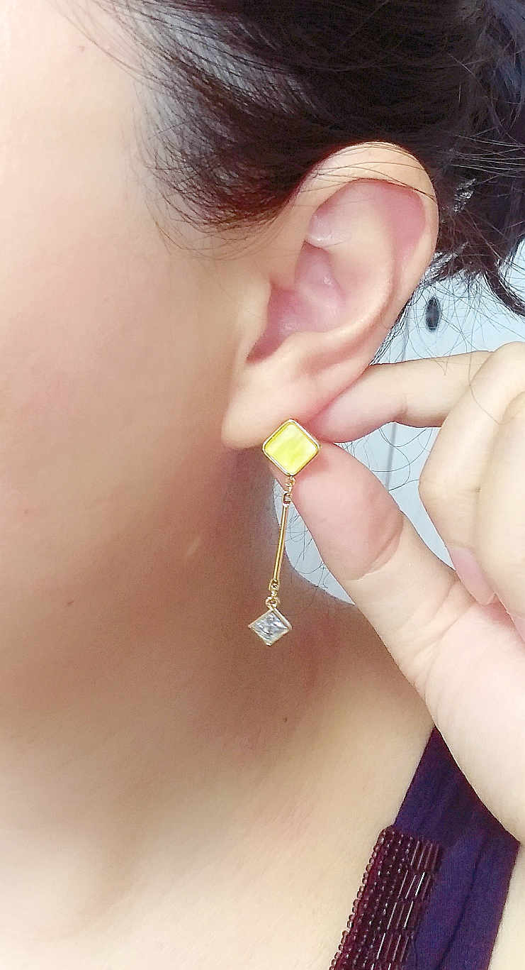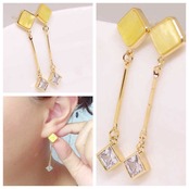 18K RGP ゴールド ダイヤ CZ 一粒 揺れ ロング ピアス gp5255
