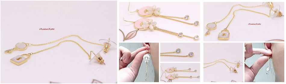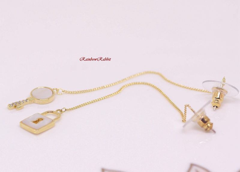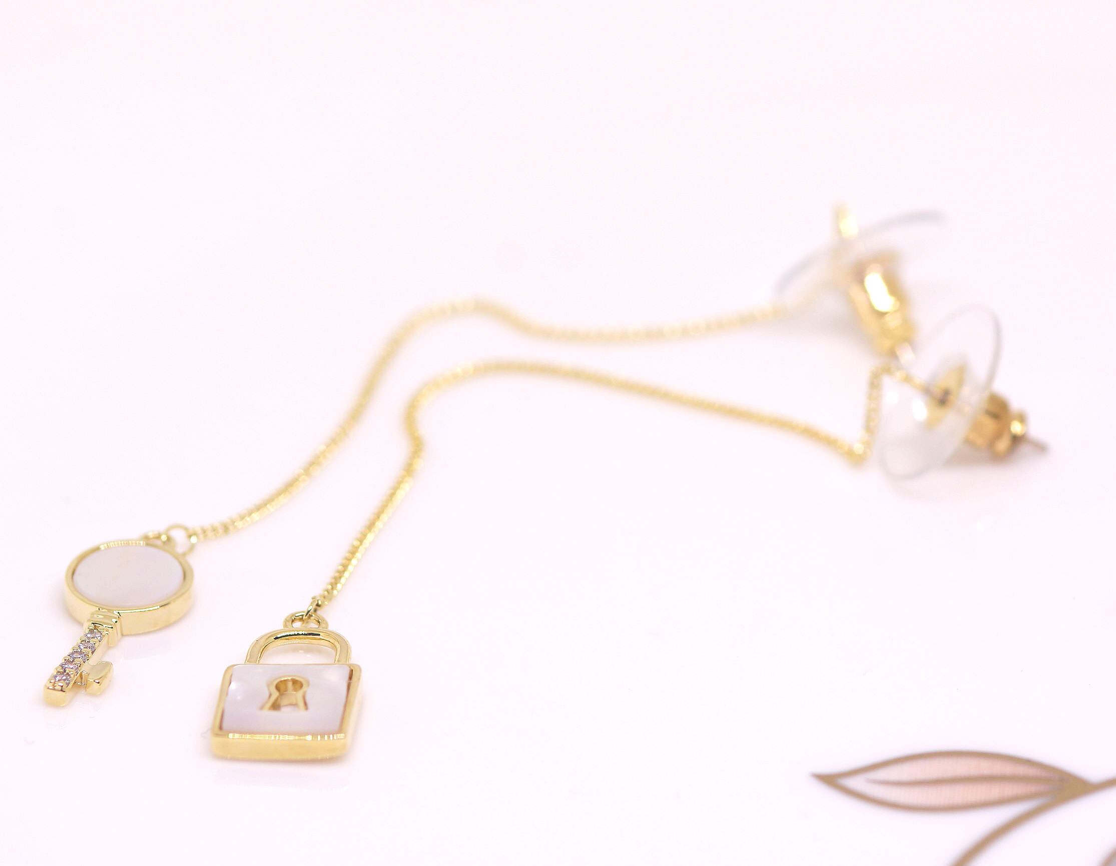 18K RGP ゴールド ダイヤ CZ 天然貝殻 キー 揺れ アメリカン ピアス gp5286
