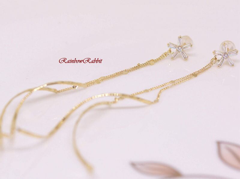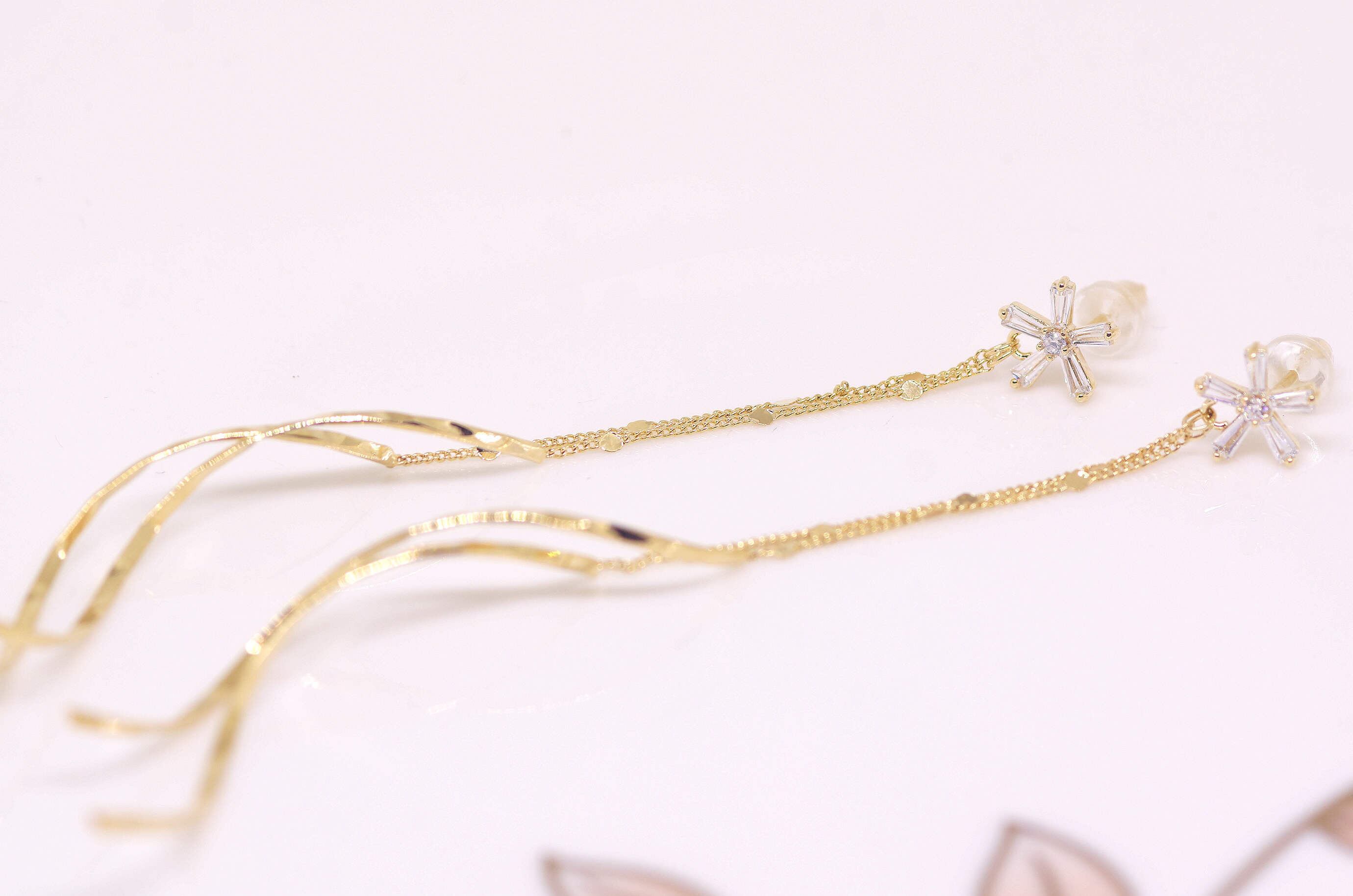 18K RGP ゴールド ダイヤ CZ フラワー ロング 揺れ ピアス gp5303