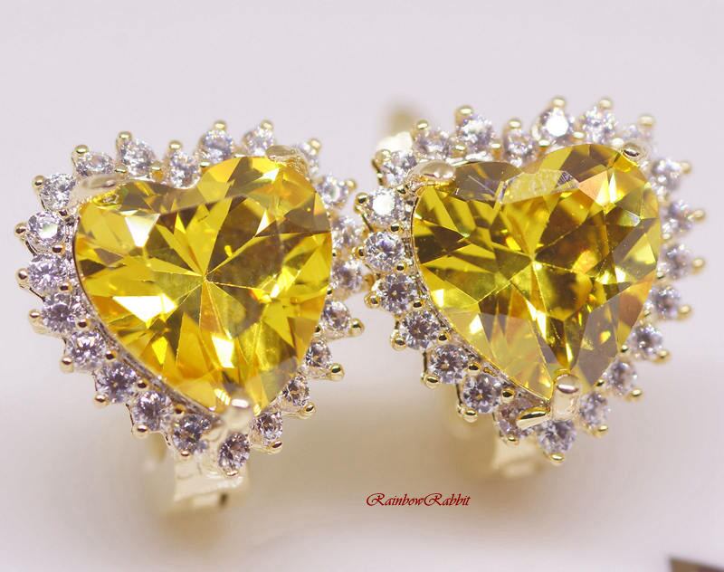 18K RGP ゴールド ダイヤ CZ イエロー ハート ピアス gp5337