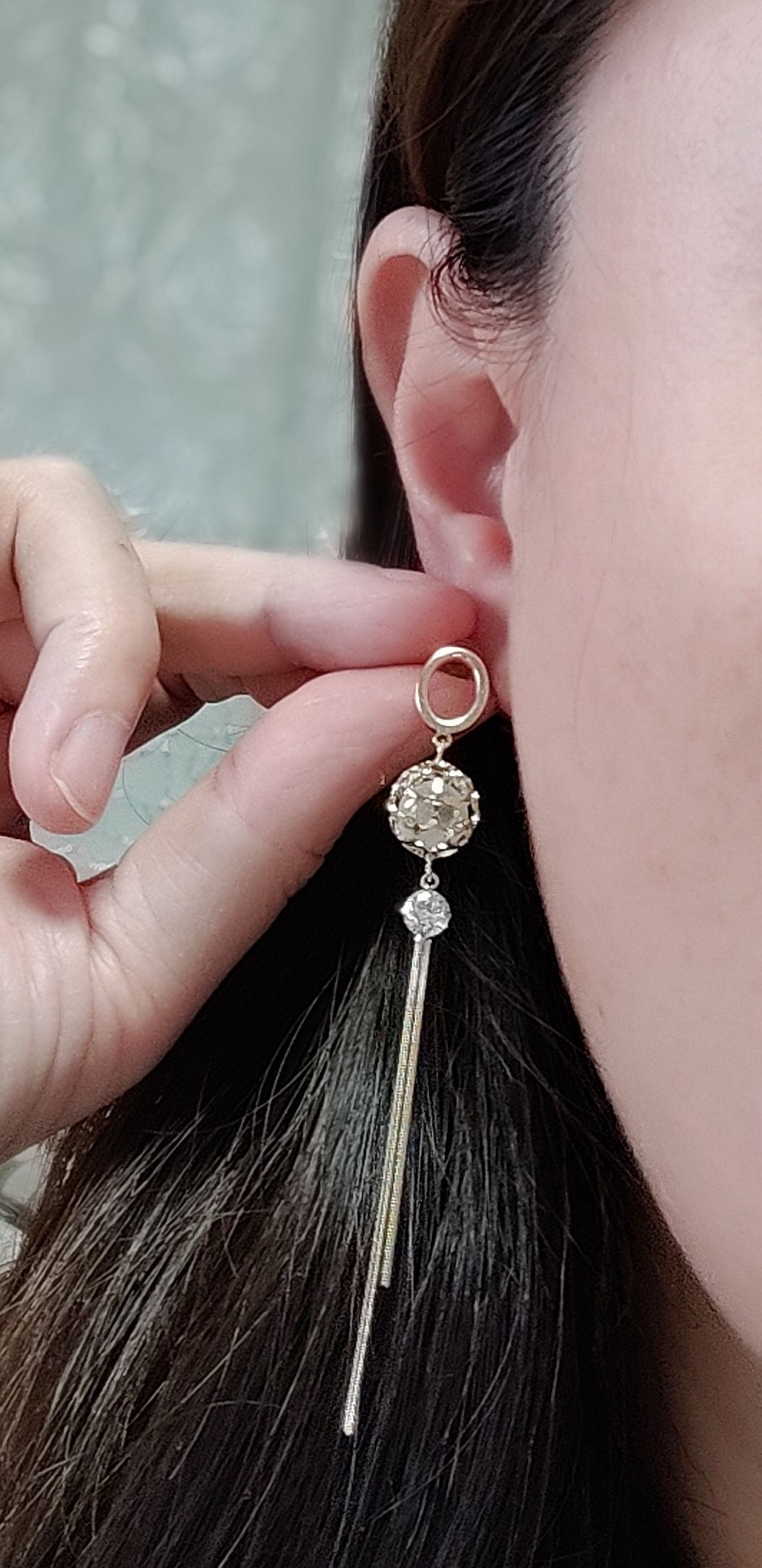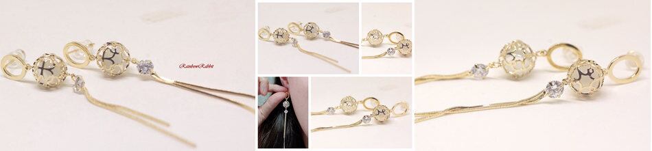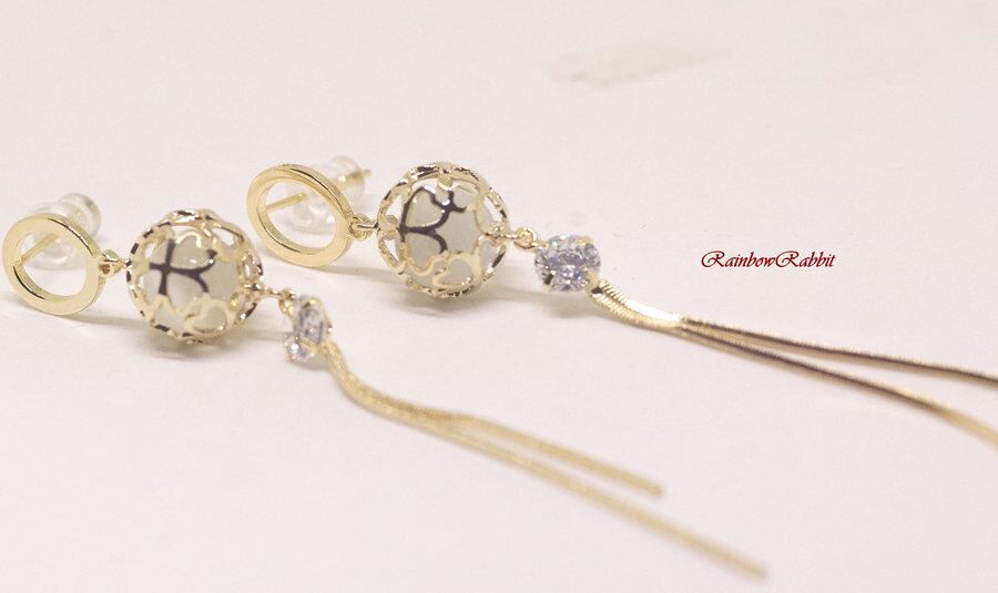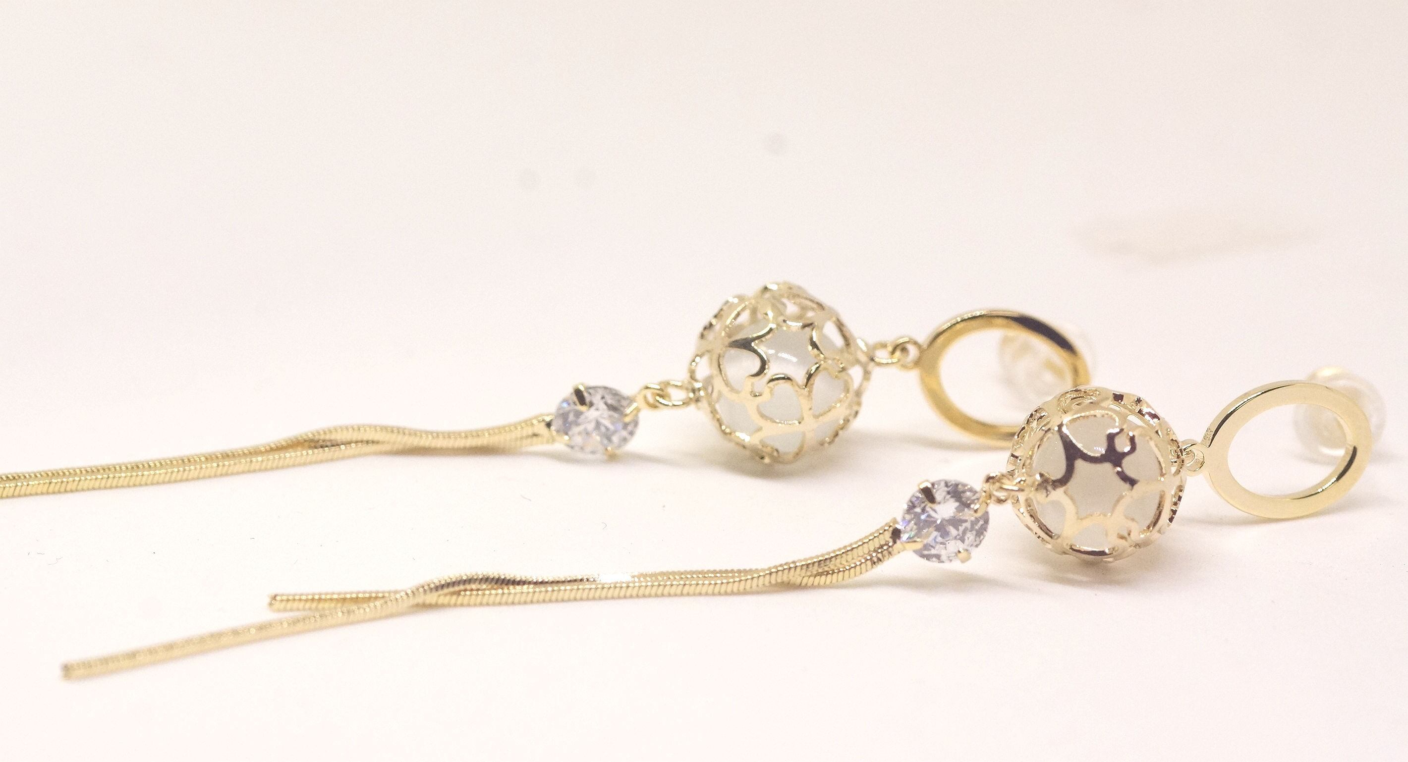18K RGP ゴールド ダイヤ CZ 一粒 フラワー ロング ピアス gp5353