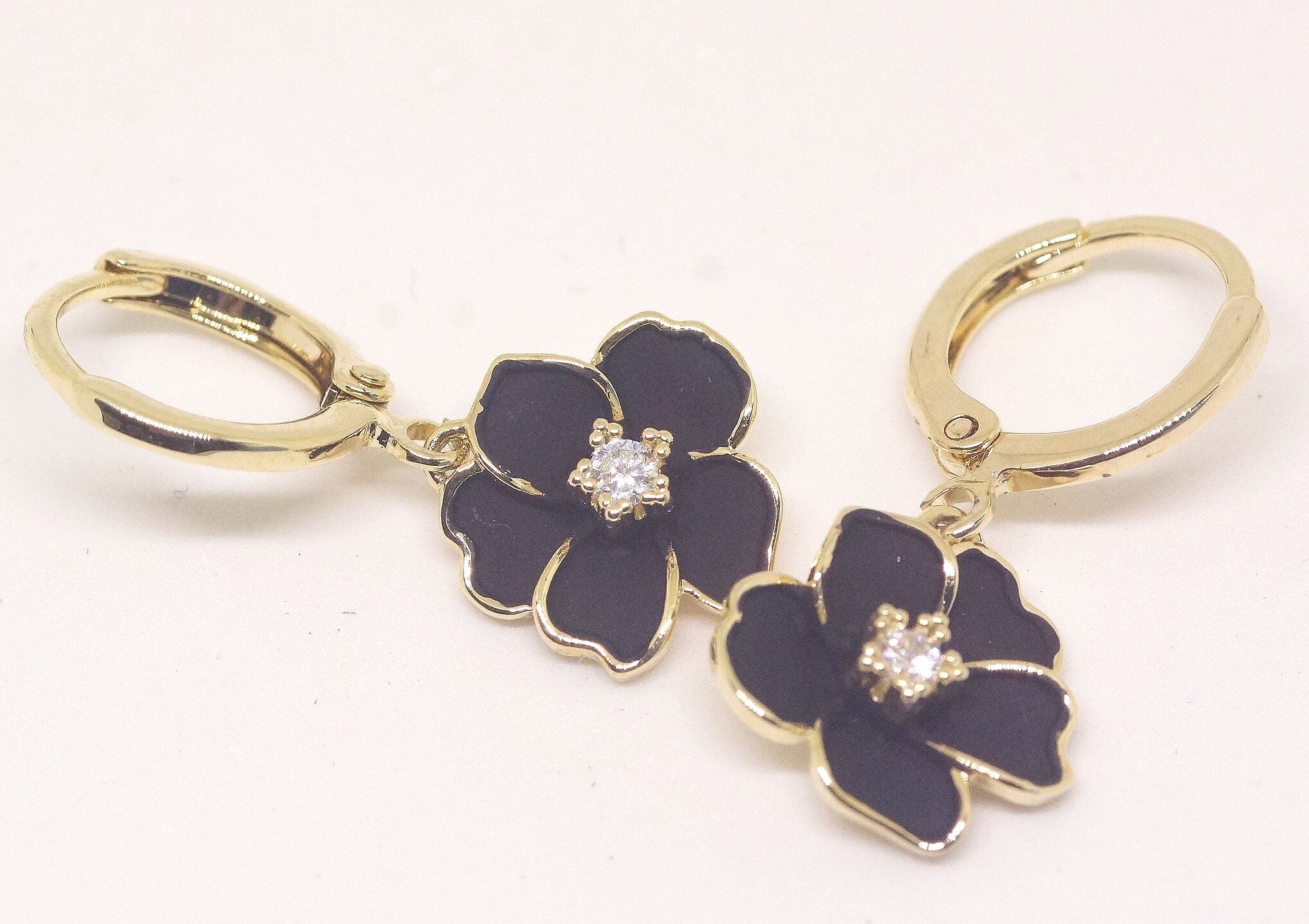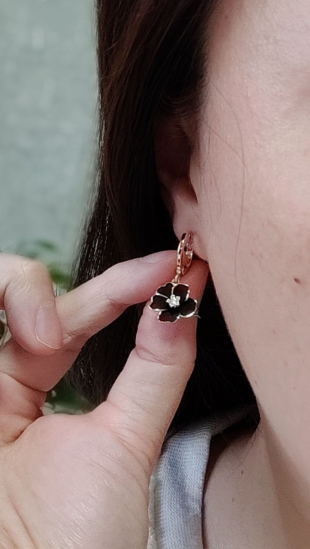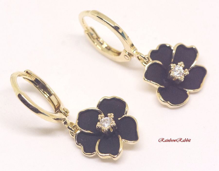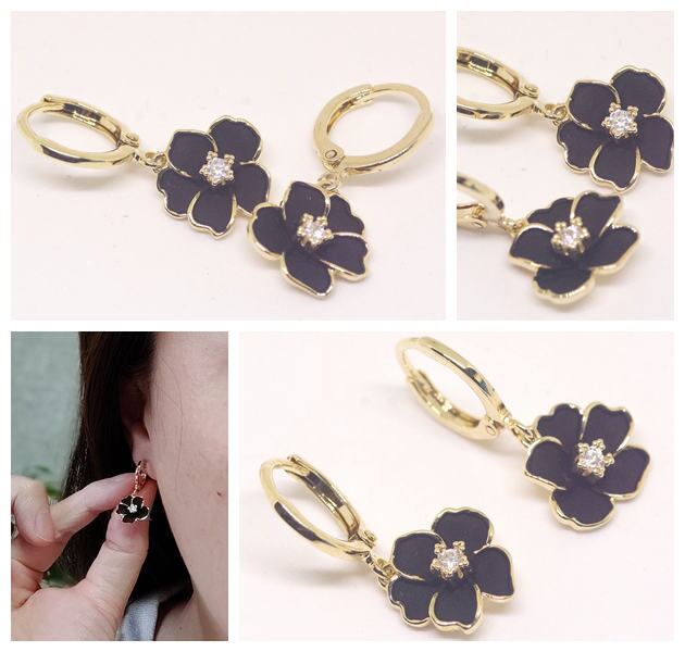 18K RGP ゴールド ダイヤ CZ ブラック フラワー リング ピアス gp5358