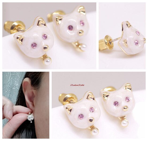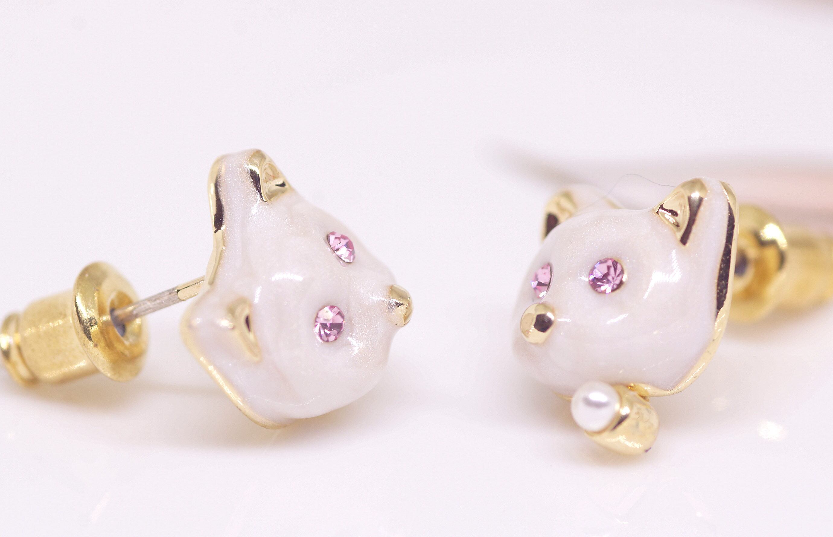 18K RGP ゴールド ダイヤ CZ 猫 キュート ピアス gp5377