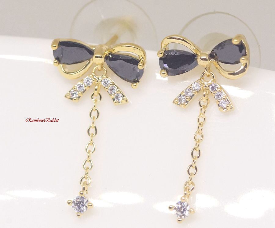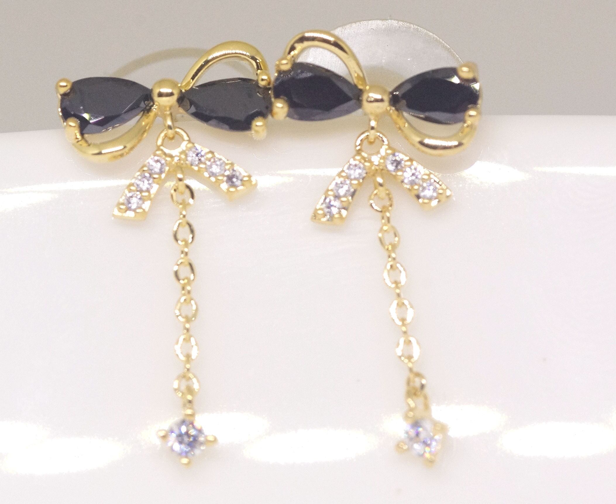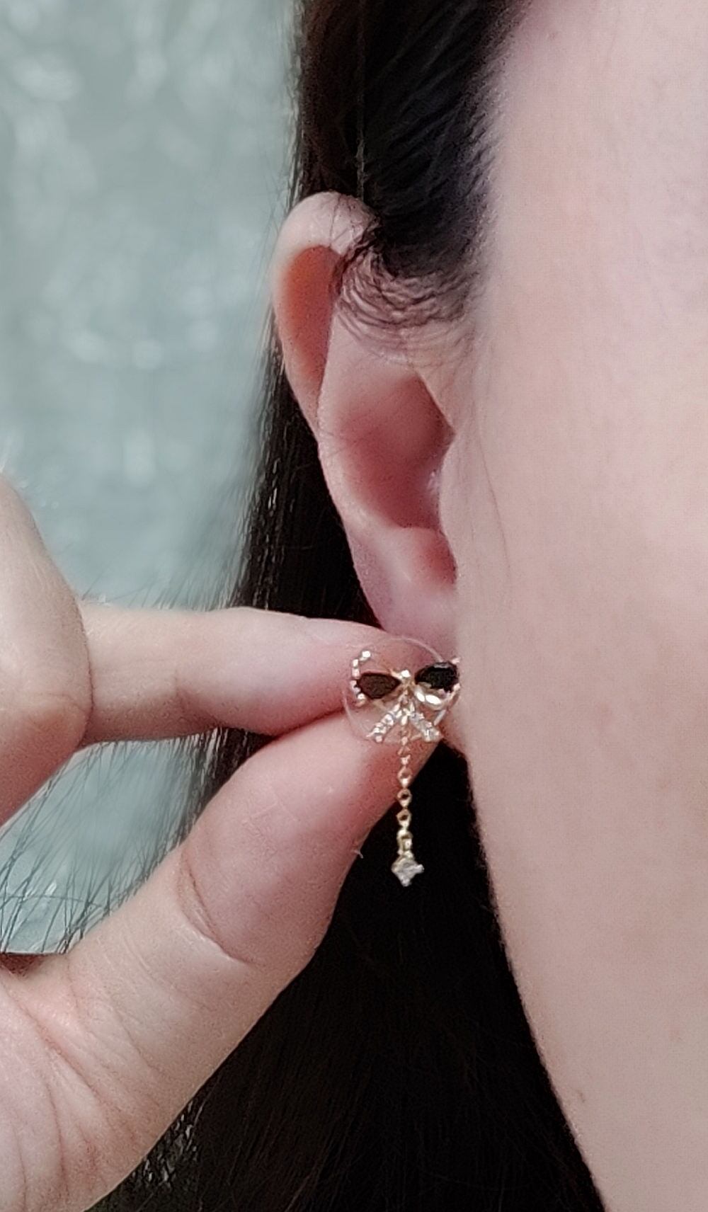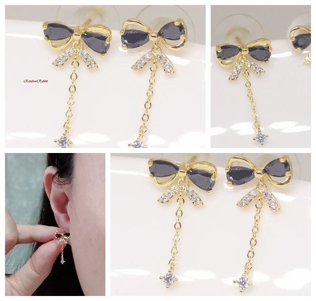 18K RGP ゴールド ダイヤ CZ リボン 一粒 揺れ ピアス gp5382
