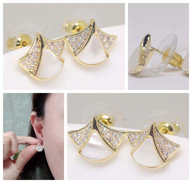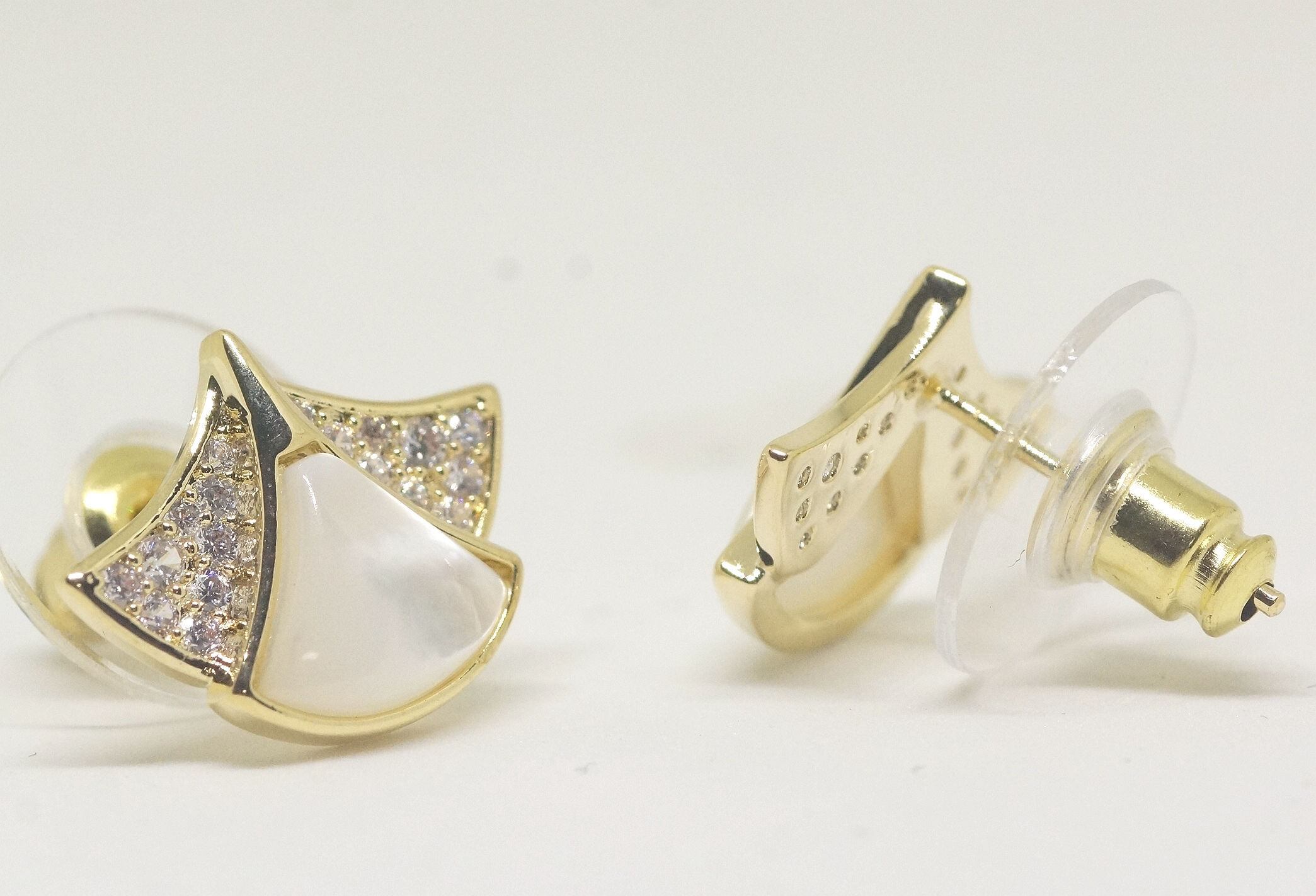 18K RGP ゴールド ダイヤ CZ フラワー 貝殻 ピアス gp5384