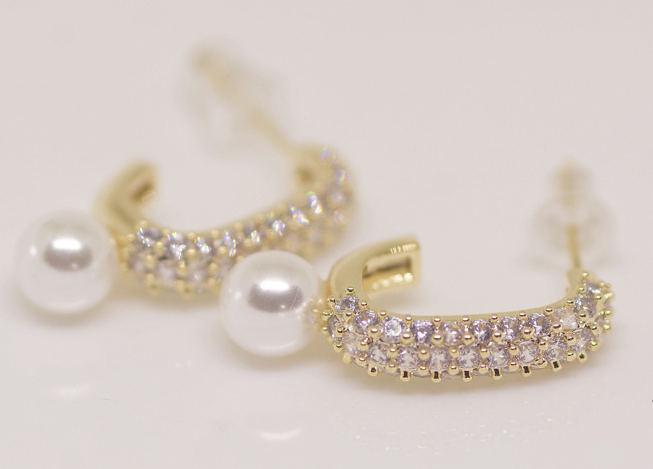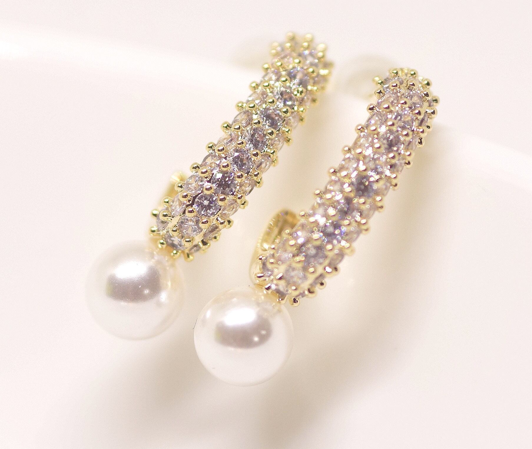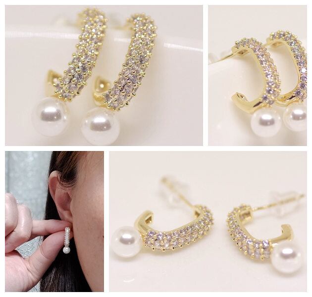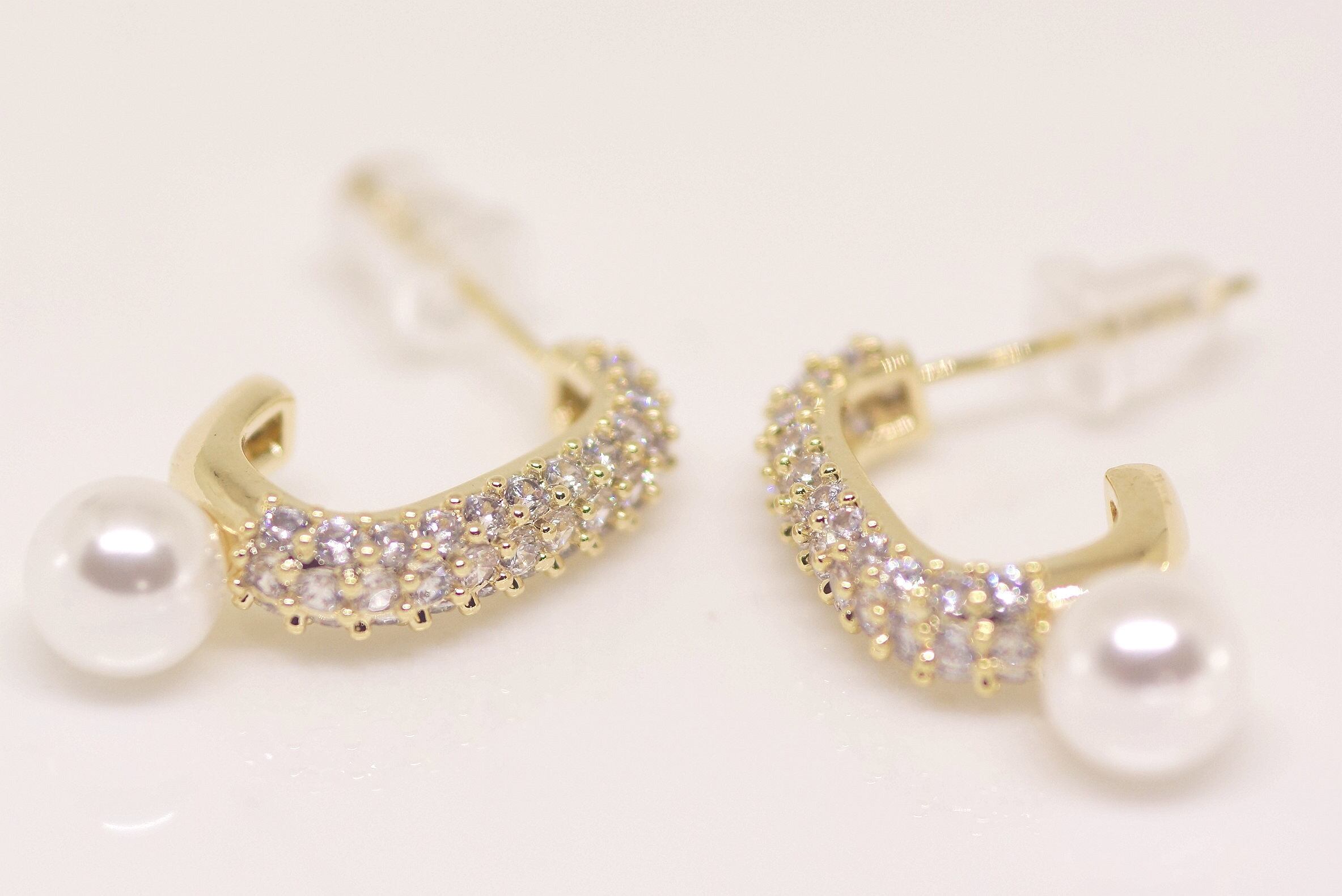 18K RGP ゴールド ダイヤ CZ リング パール ピアス gp5488