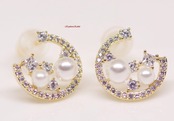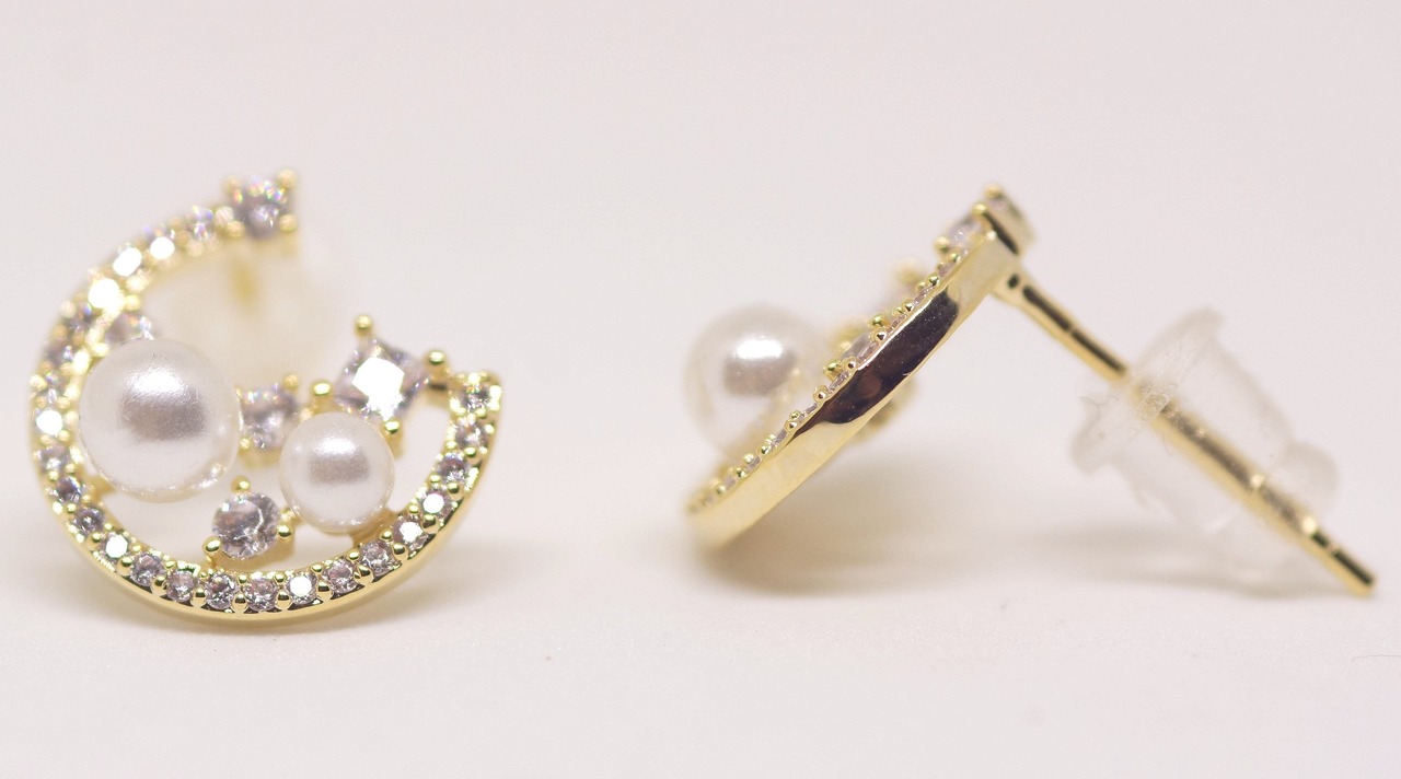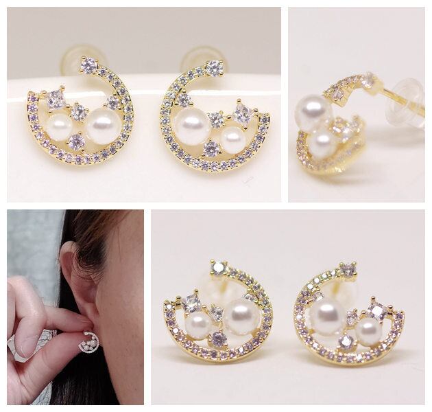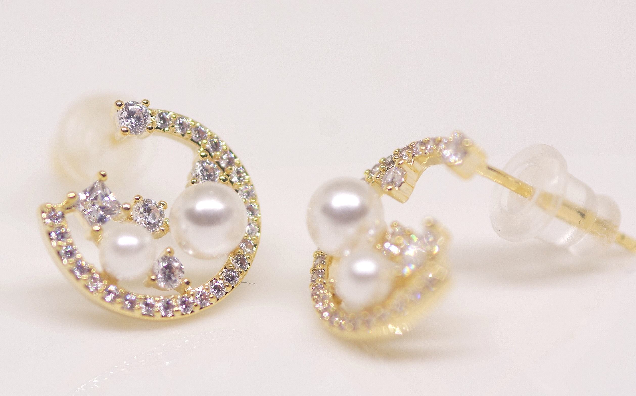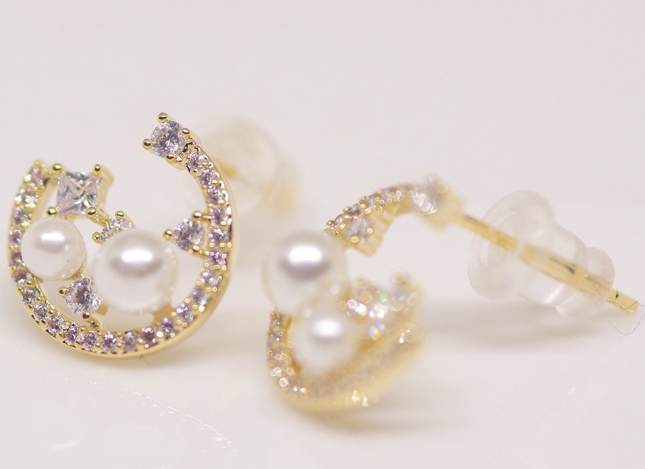 18K RGP ゴールド ダイヤ CZ ムーン パール ピアス gp5494