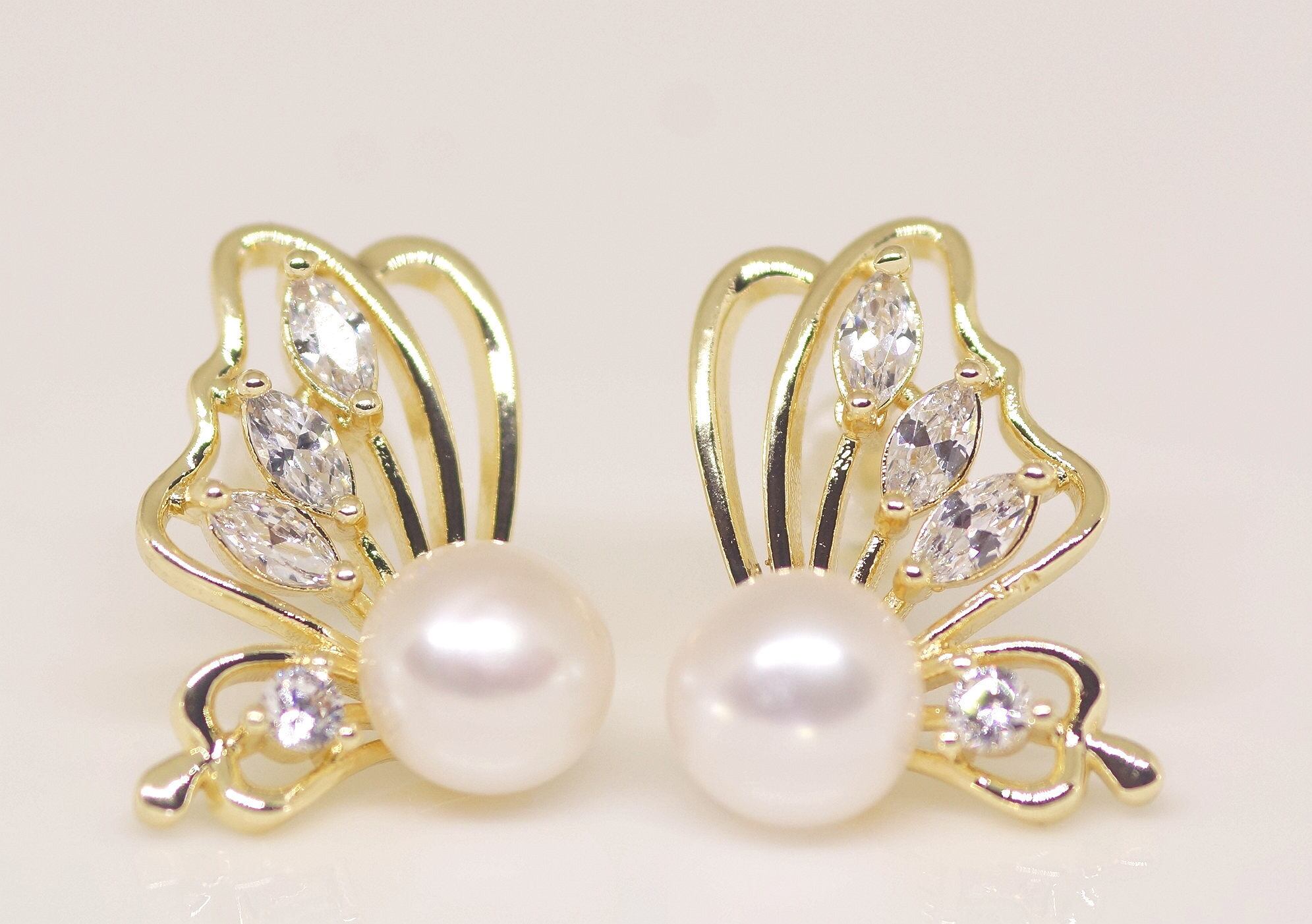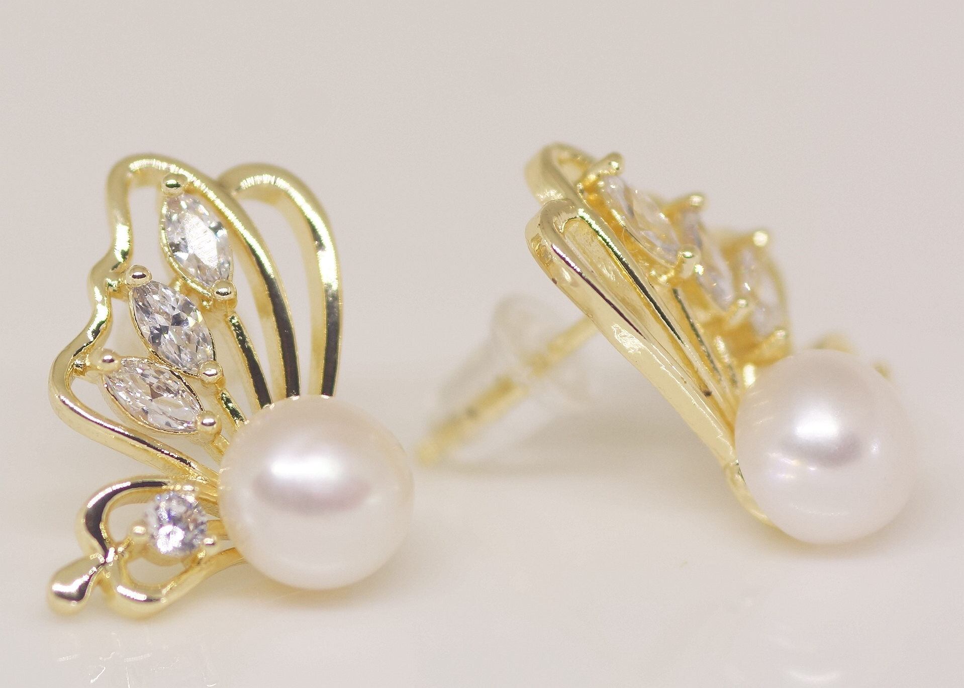 18K RGP ゴールド ダイヤ CZ 蝶々 パール ピアス gp5508