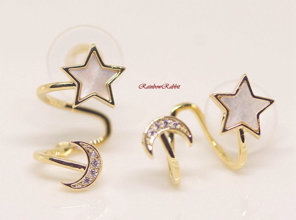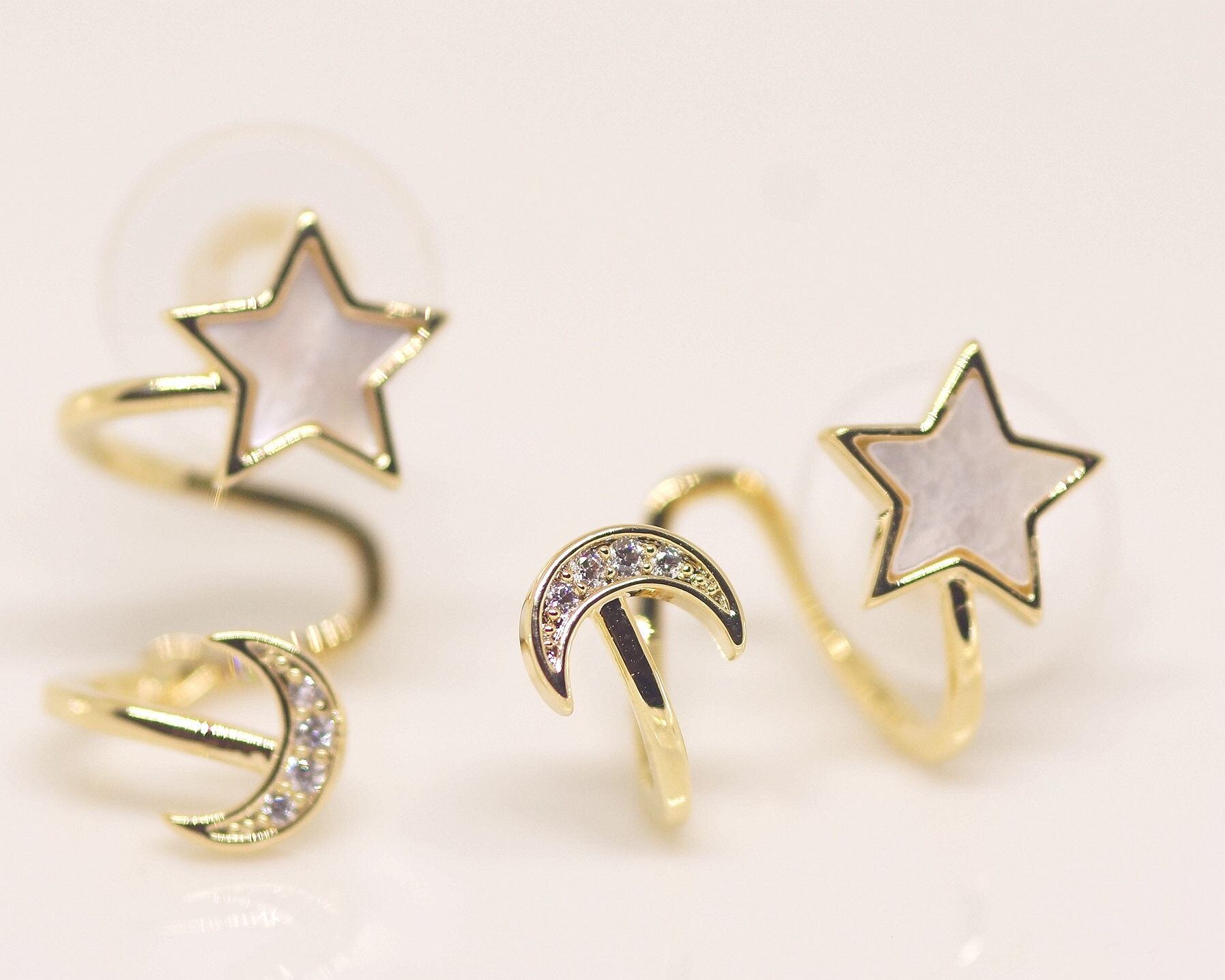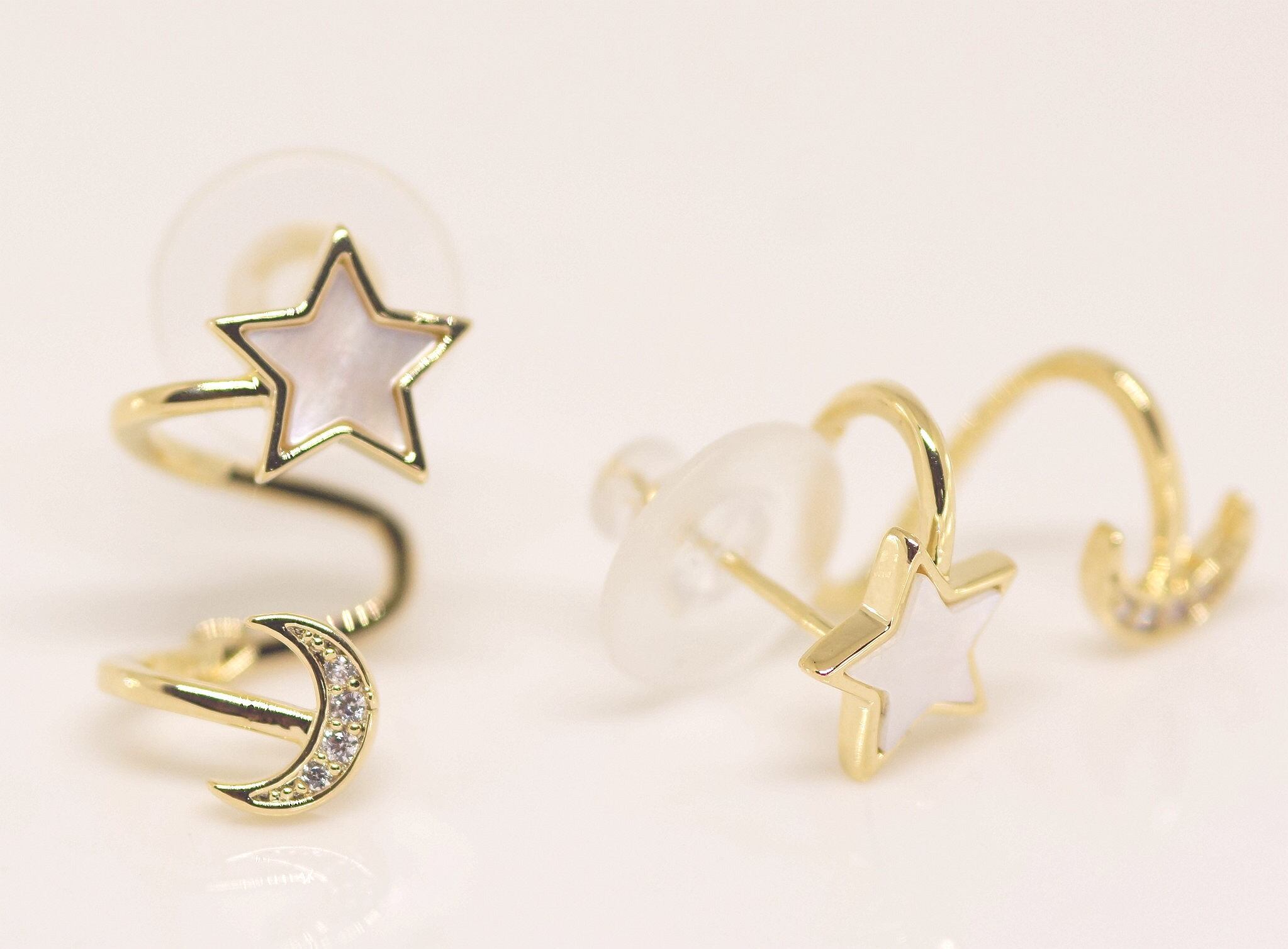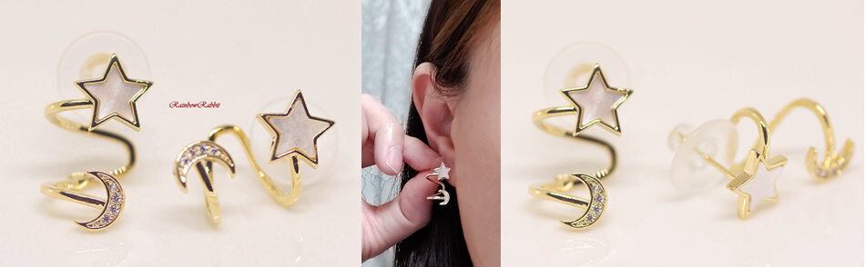 18K RGP ゴールド ダイヤ CZ スター ムーン ピアス gp5530