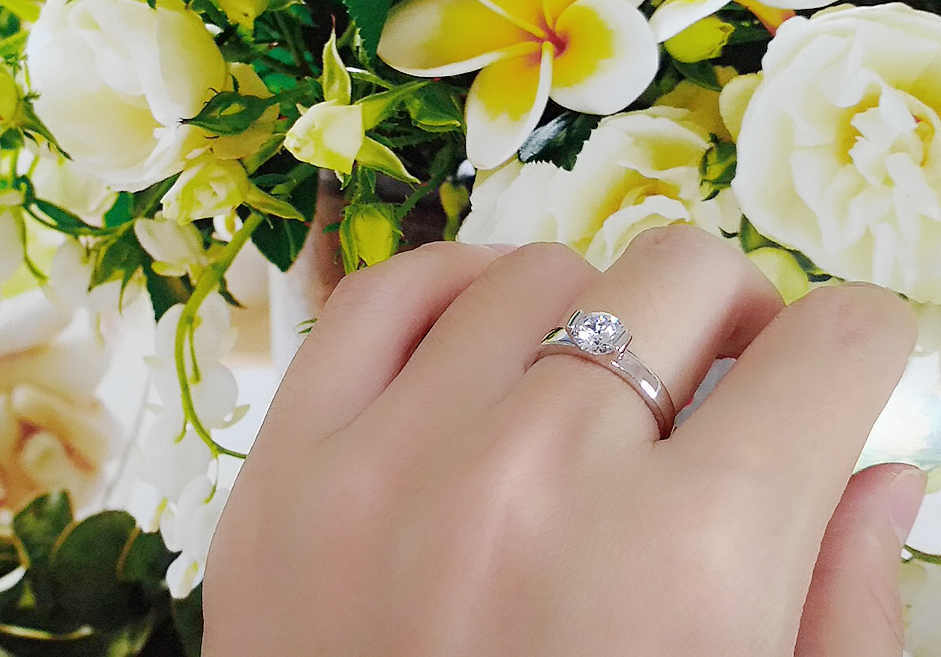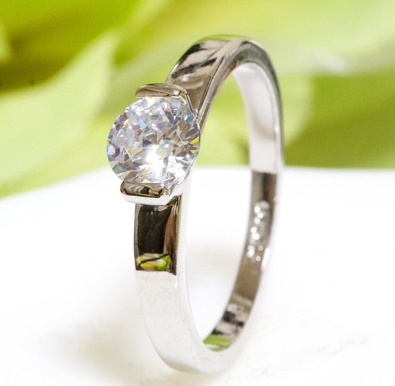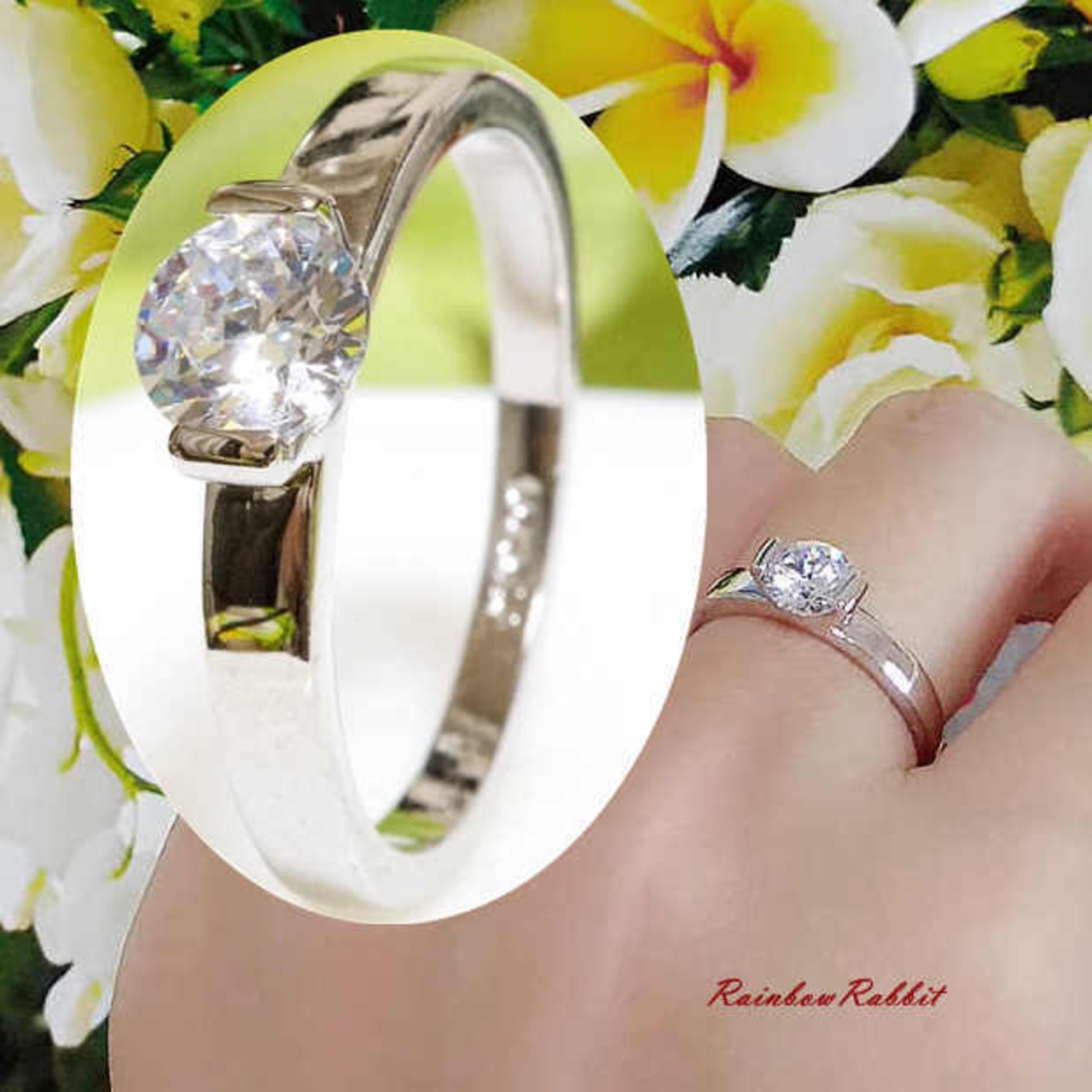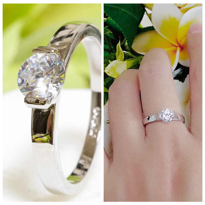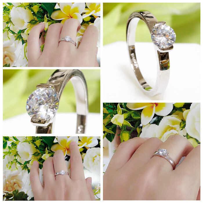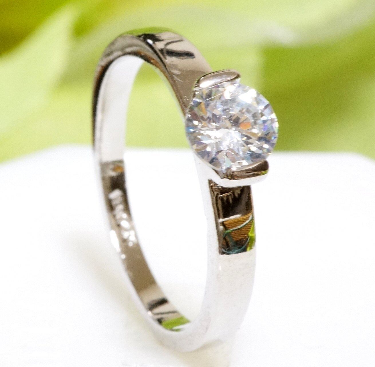 18K RGP プラチナ ダイヤ CZ 一粒 上質 リング yu854e