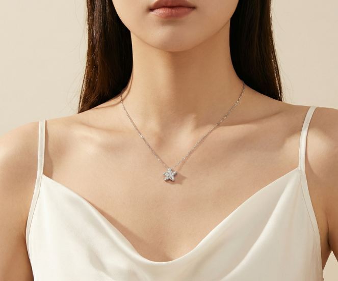 18K RGP プラチナ ダイヤ CZ スター ネックレス yn3057
