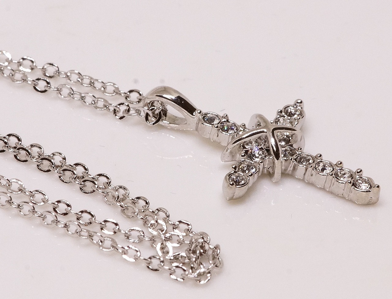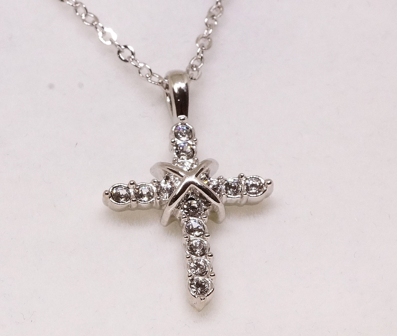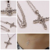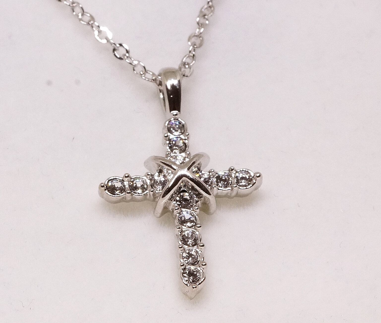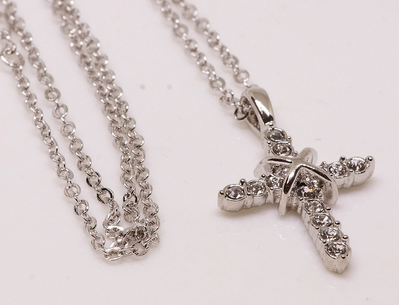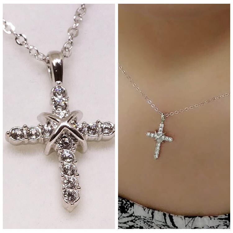 18K RGP プラチナ ダイヤ CZ クロス ネックレス yn3101