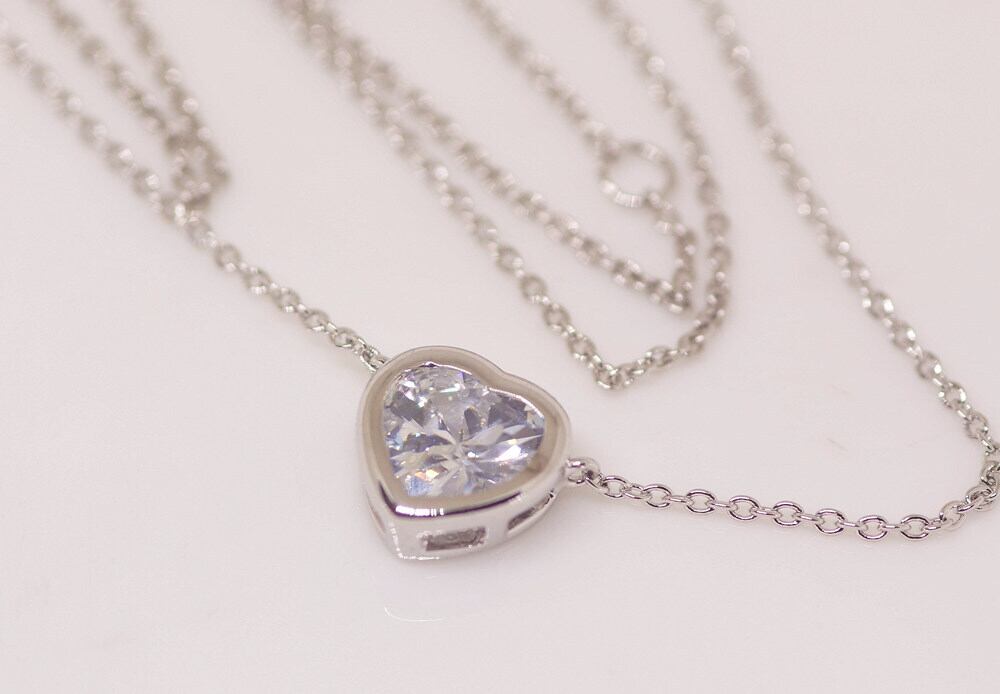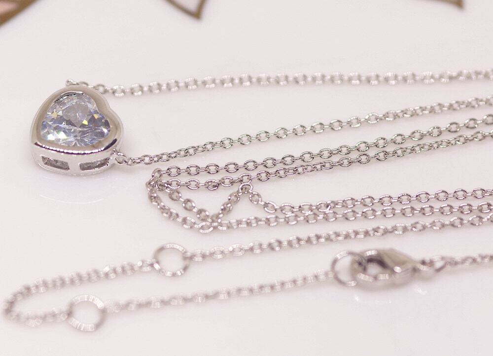 18K RGP プラチナ ダイヤ CZ ハート ネックレス yn3110