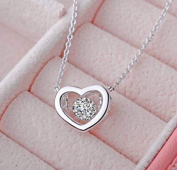 18K RGP プラチナ ダイヤ CZ ハート ネックレス yn3130