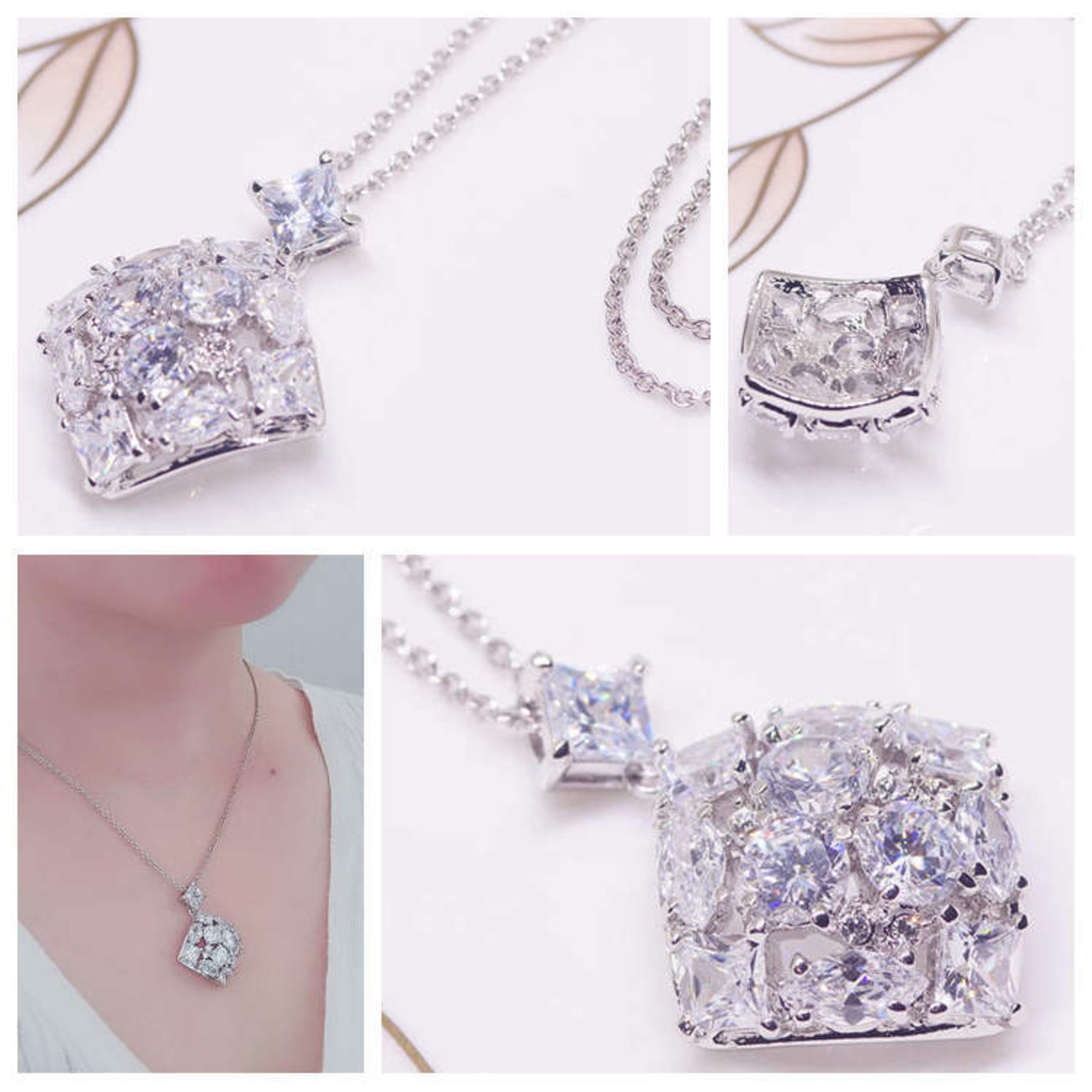 18K RGP プラチナ CZ ダイヤ フラワー ネックレス yn3142