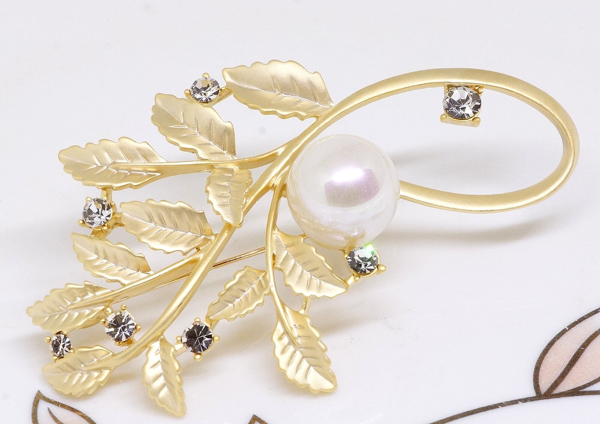 高級CZキュービックジルコニアゴールドフラワーパールブローチgx5089