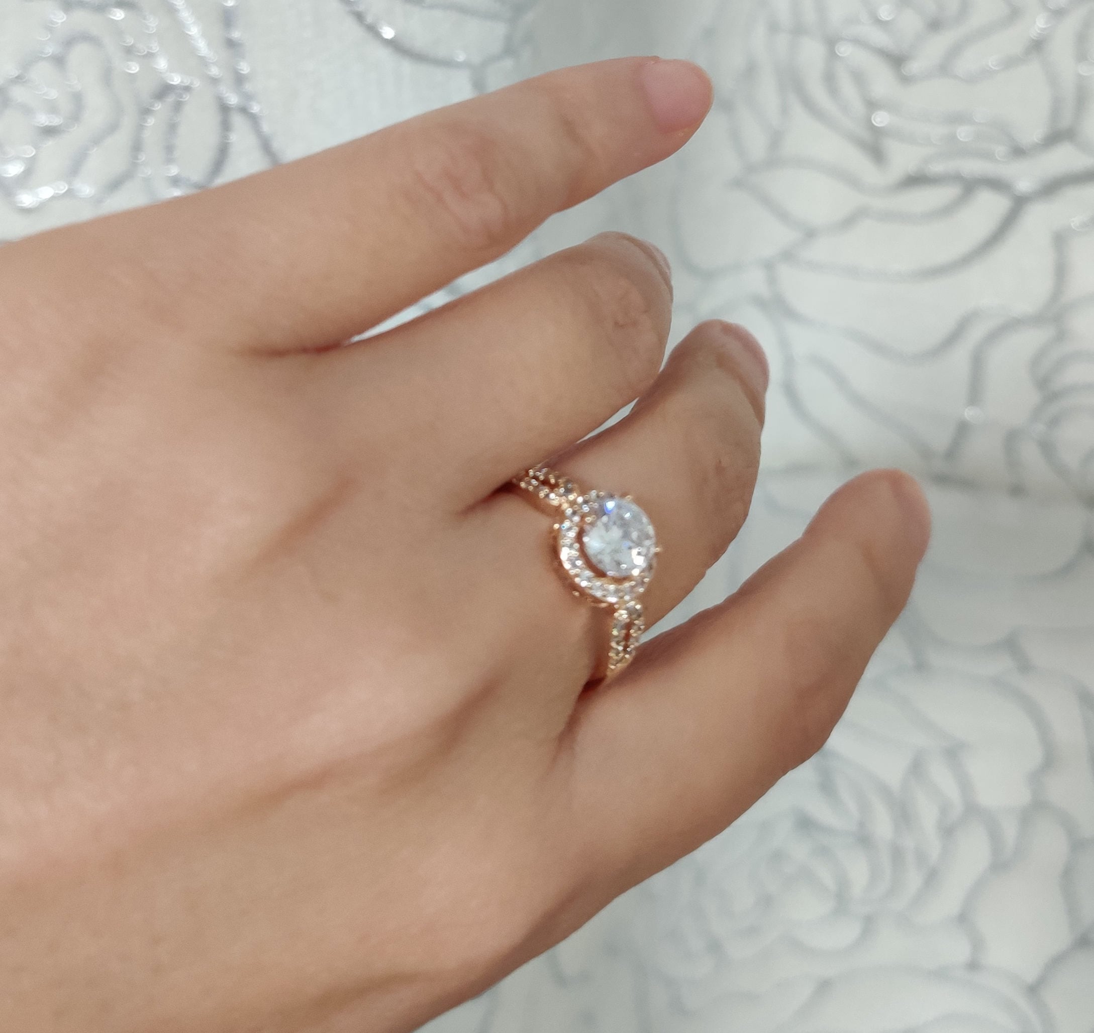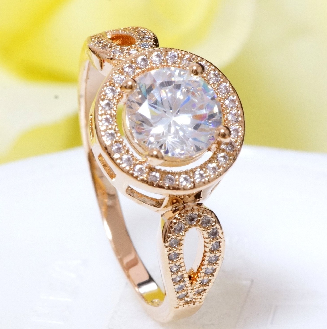 指輪 18K RGP ゴールド ダイヤ CZ 大粒 上品 リング gu1109e