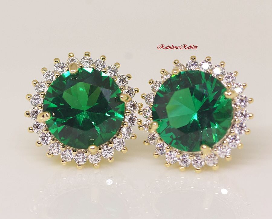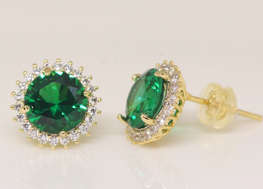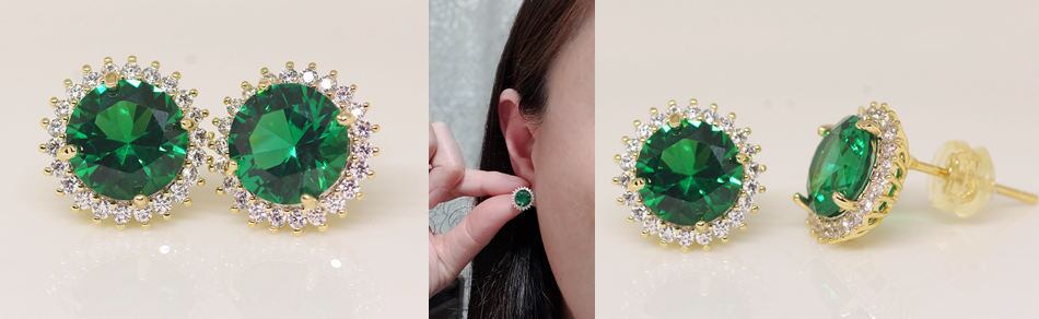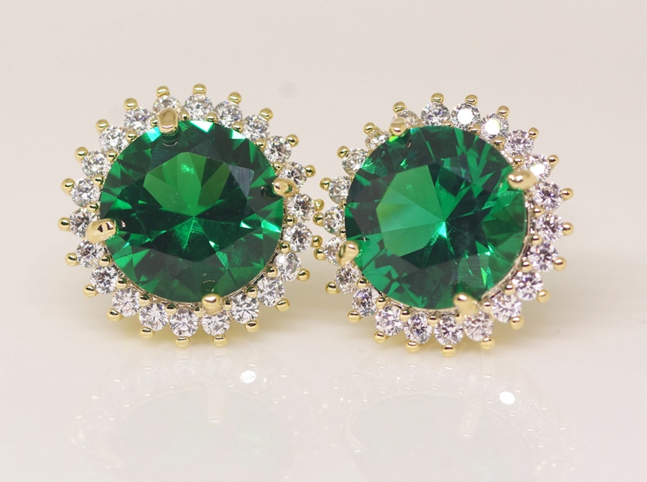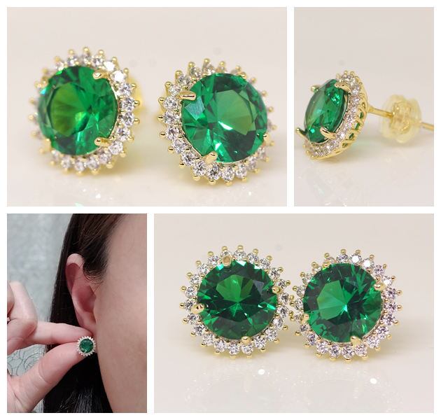 18K RGP ゴールド ダイヤ CZ グリーン フラワー ピアス gp5549