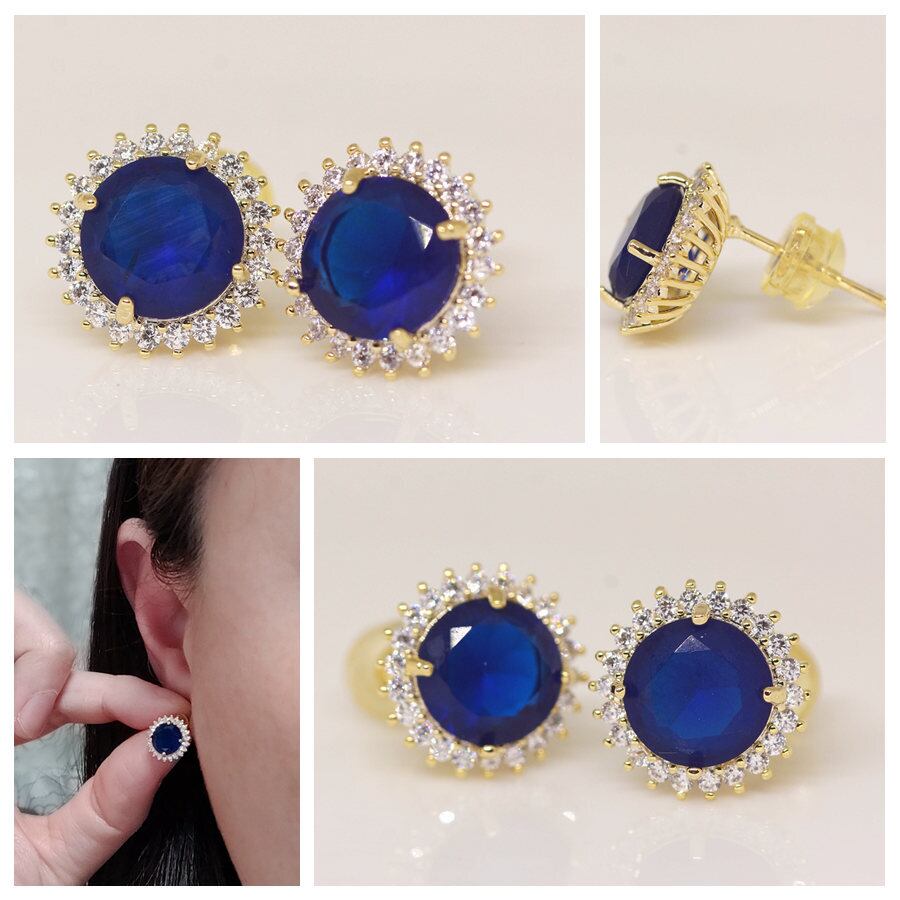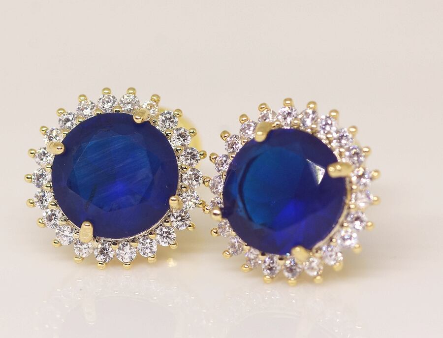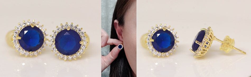 18K RGP ゴールド ダイヤ CZ ブルー フラワー ピアス gp5561