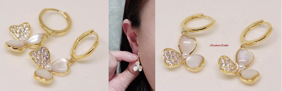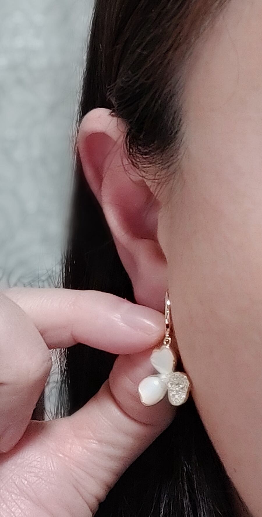 18K RGP ゴールド ダイヤ CZ 三つ葉 リング ピアス gp5563