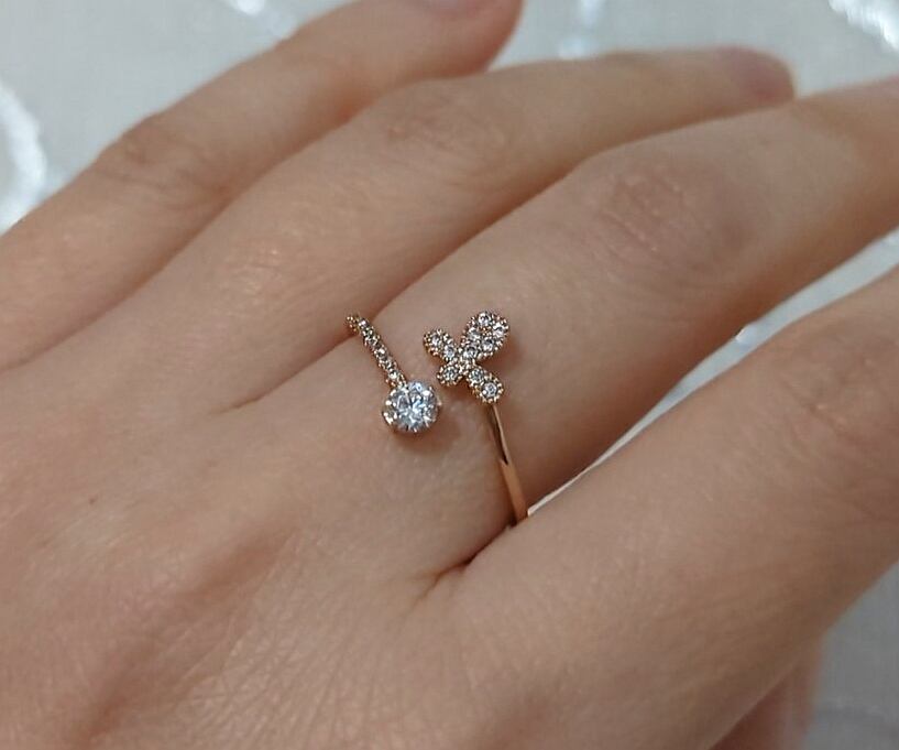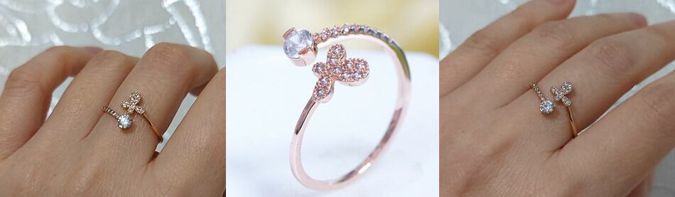 18K RGP ゴールド ダイヤ CZ 蝶々 一粒 リング gu1251e