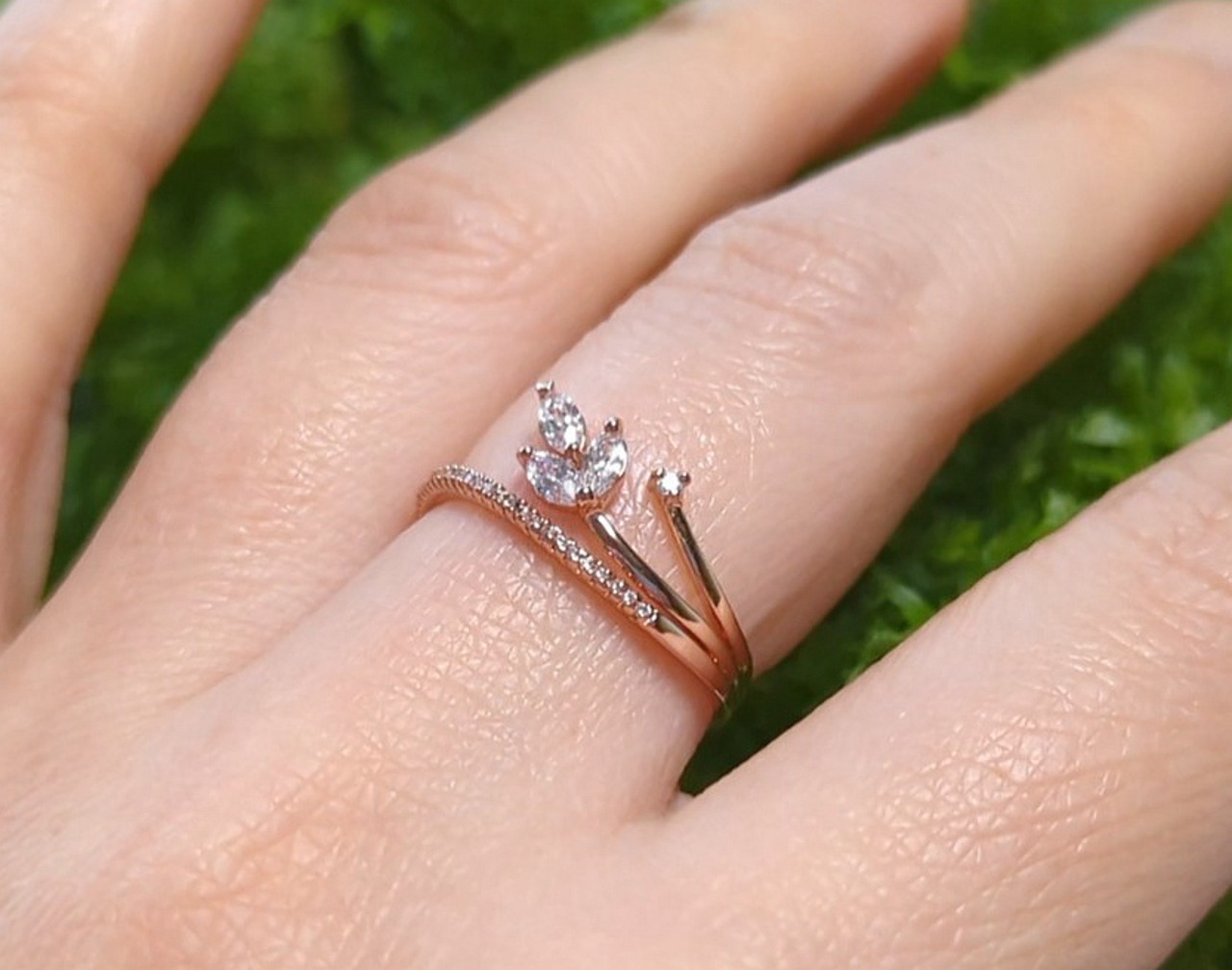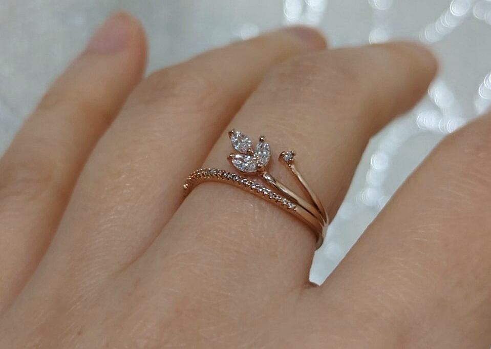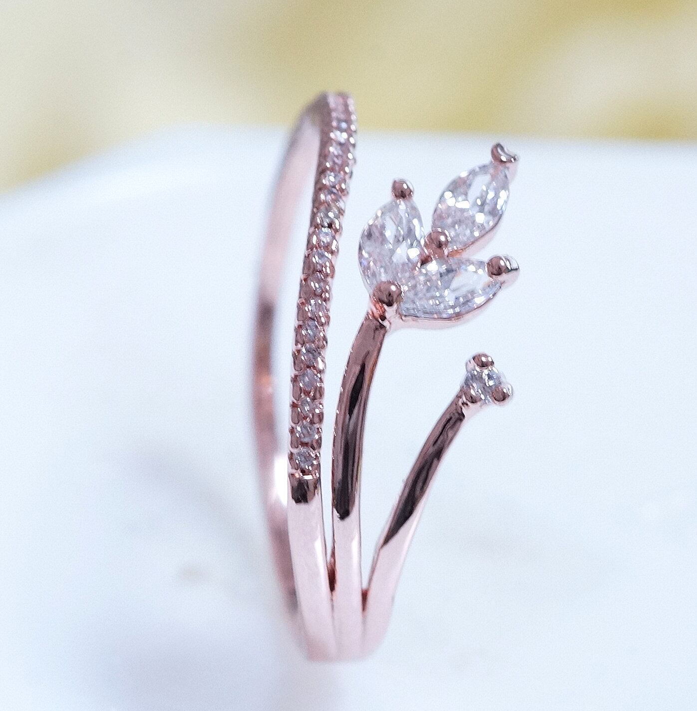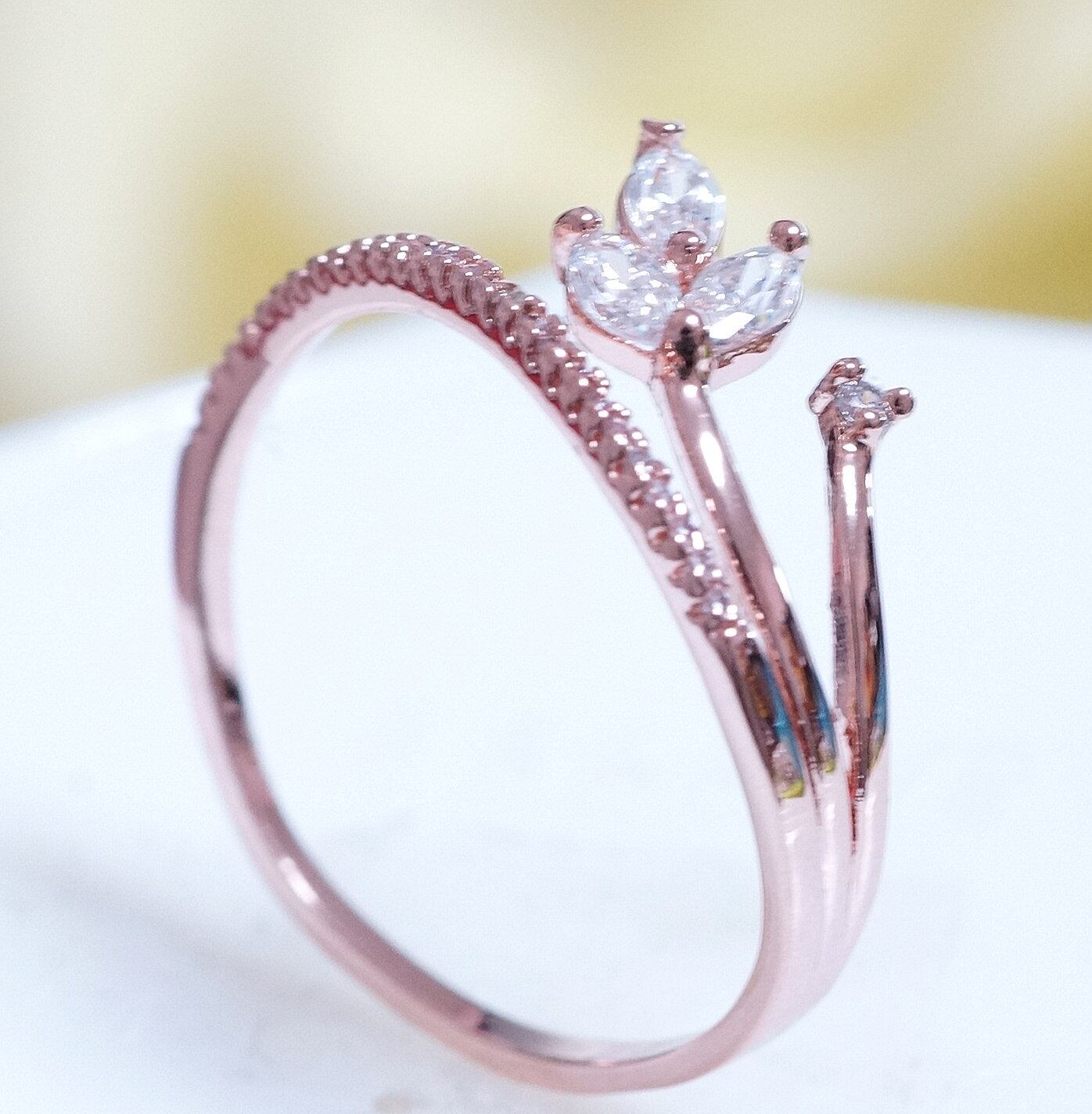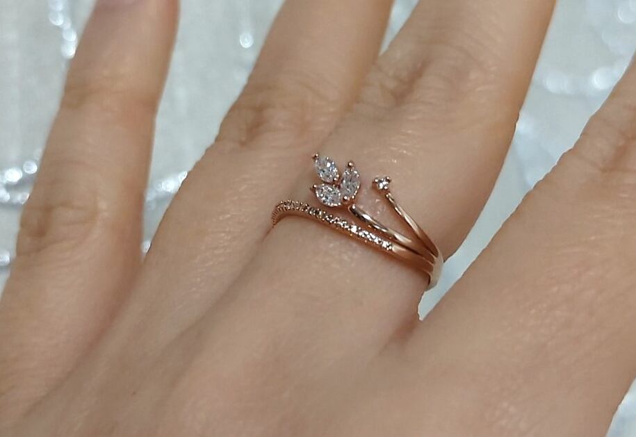 18K RGP ゴールド ダイヤ CZ フラワー リング gu1257e