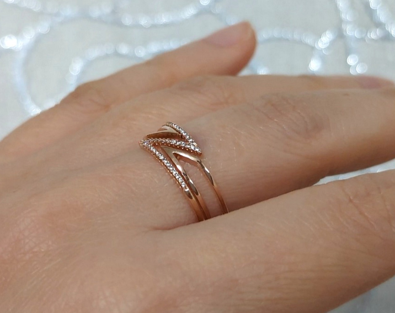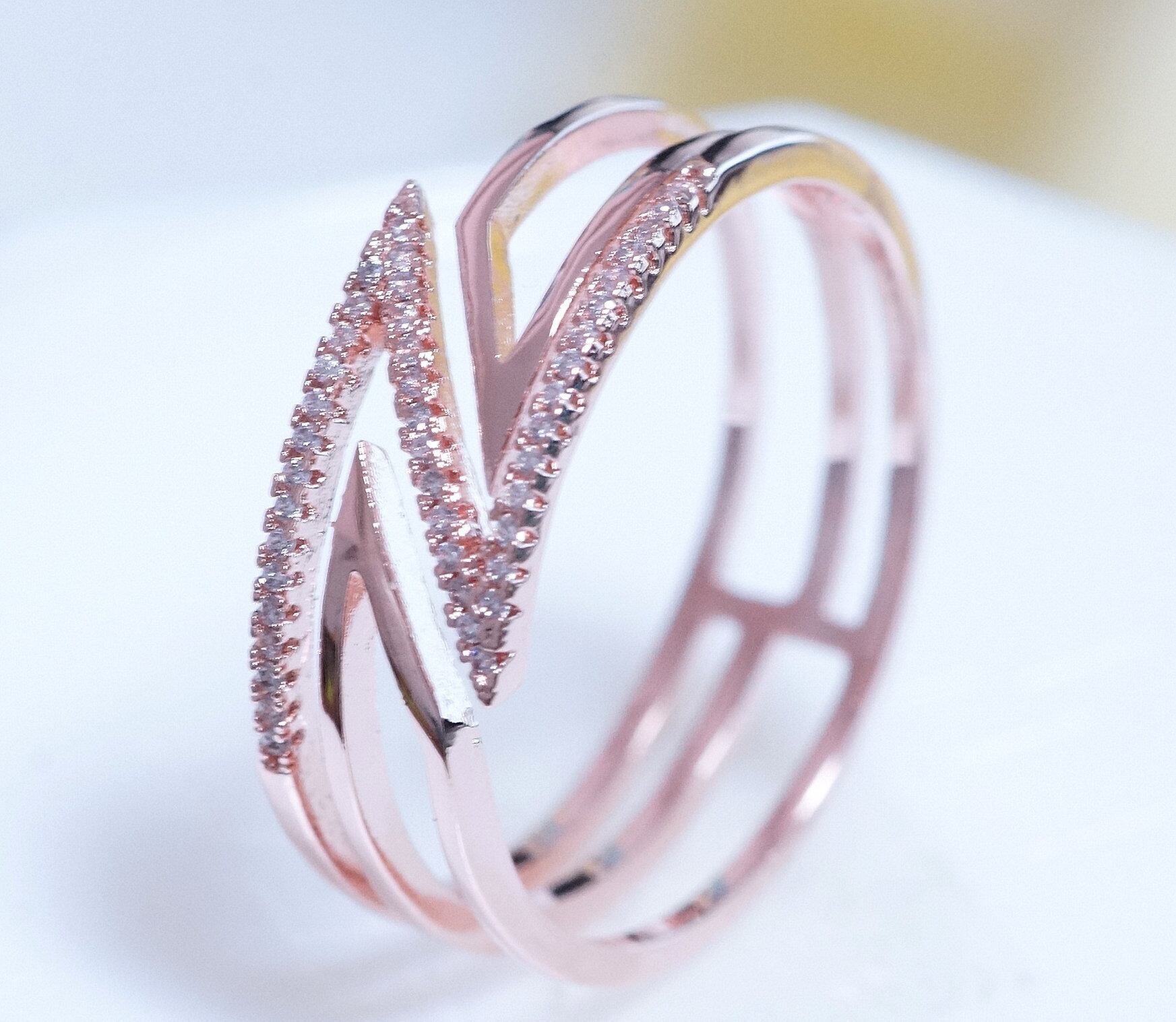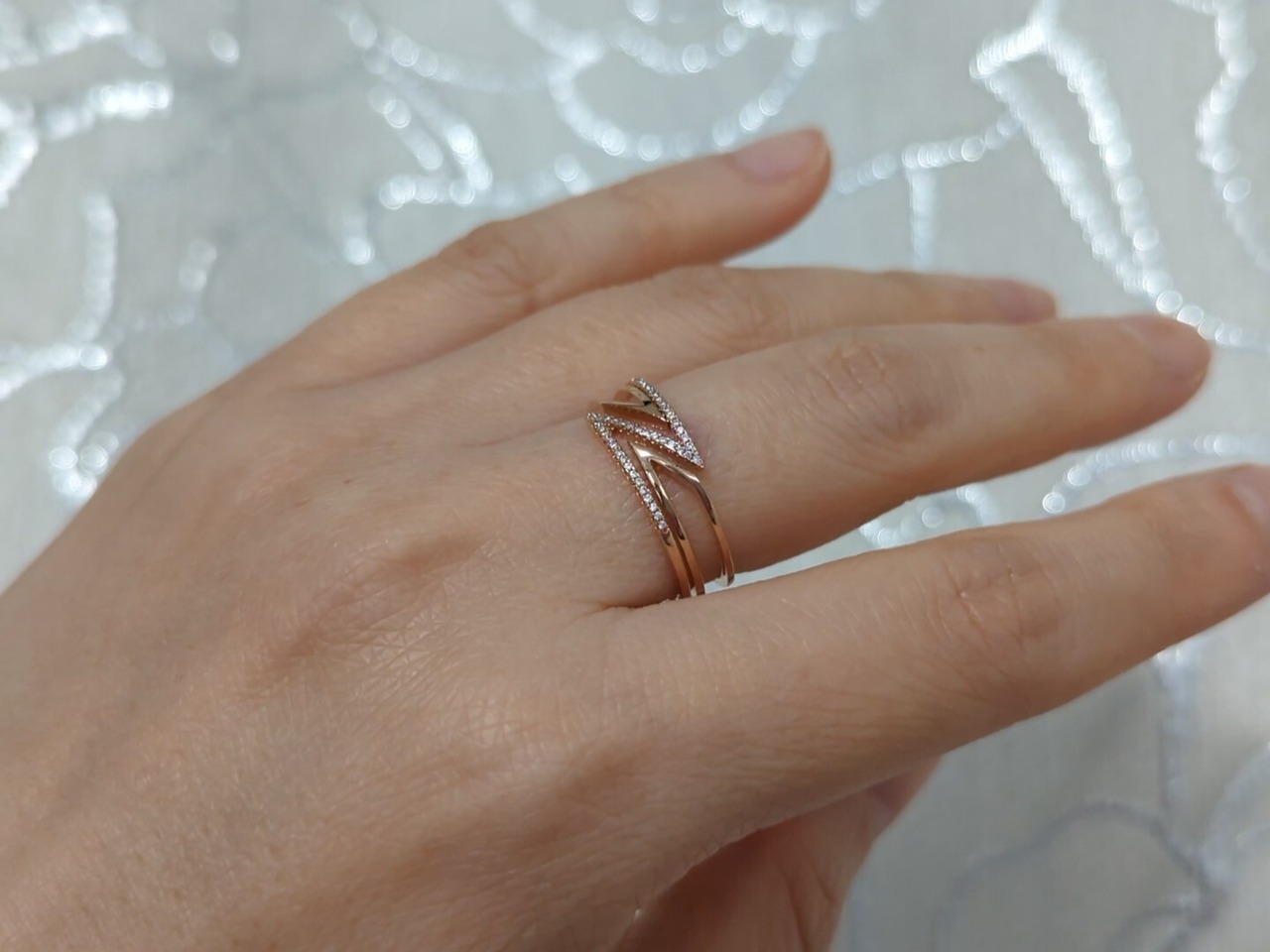 18K RGP ゴールド ダイヤ CZ【Z】模様上品 リング gu1264e