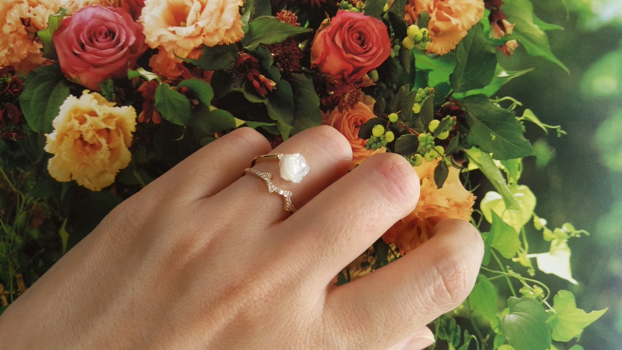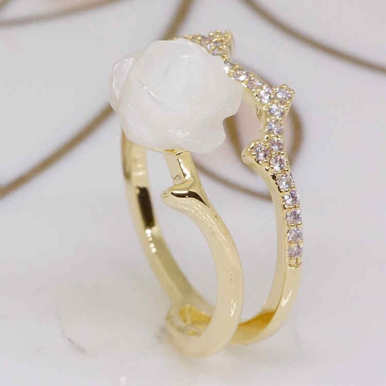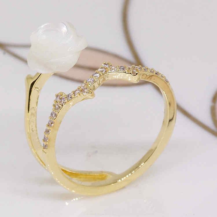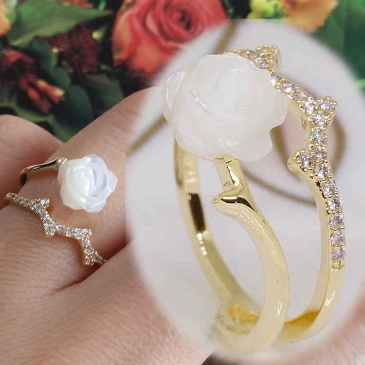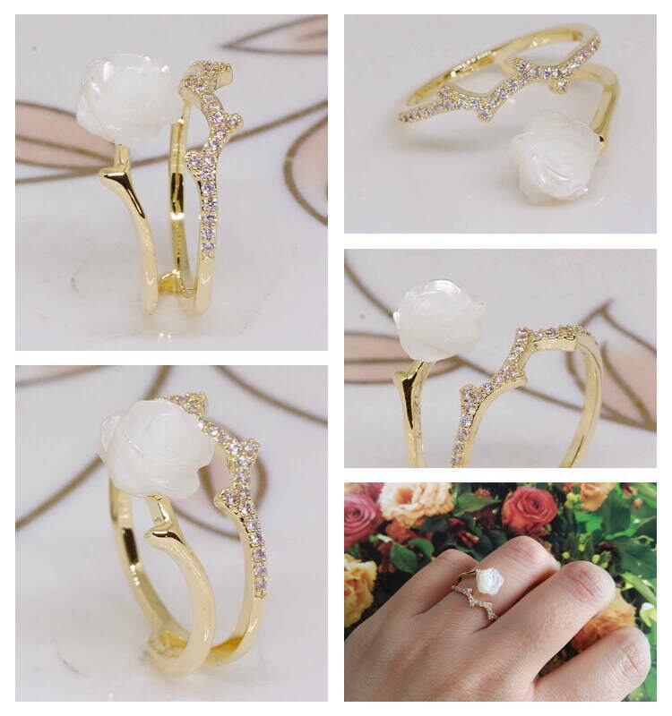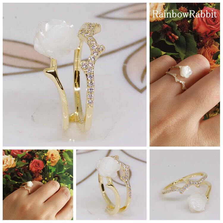 18K RGP ゴールド ダイヤ CZ 貝殻石 ホワイト バラ リング gu1287e