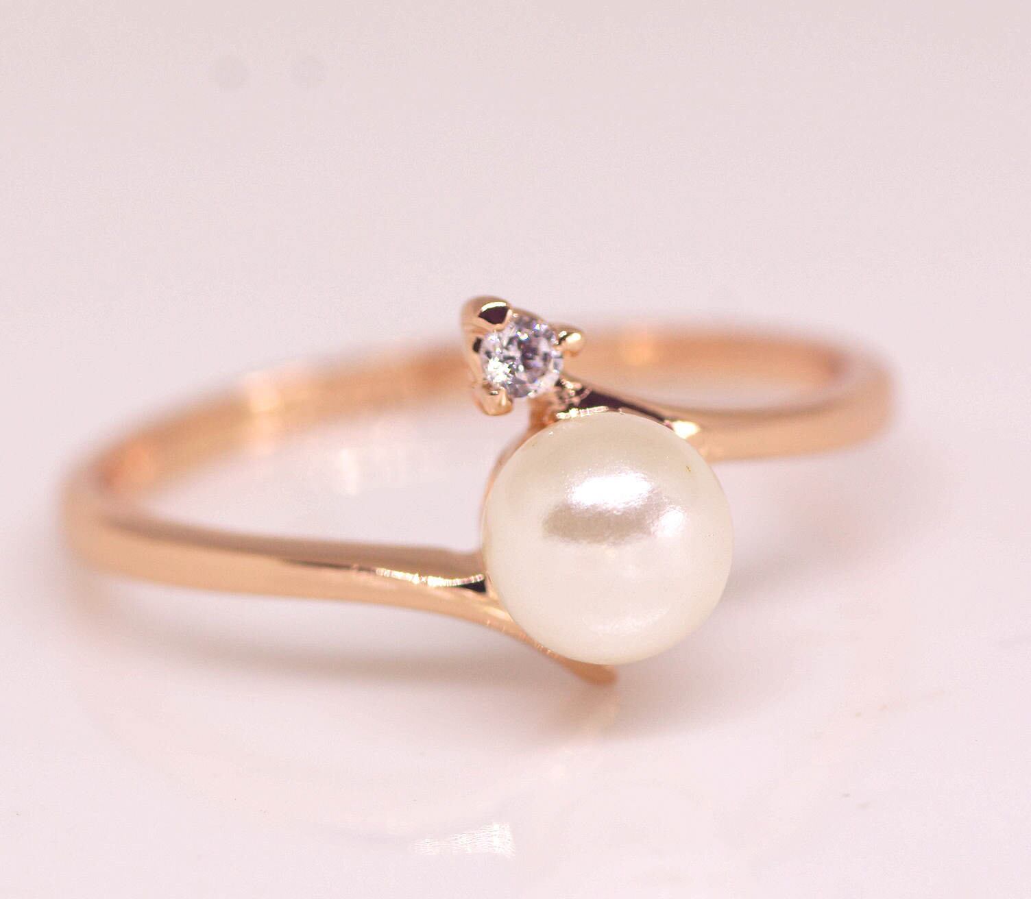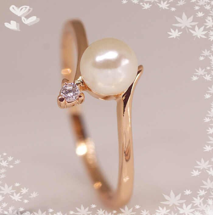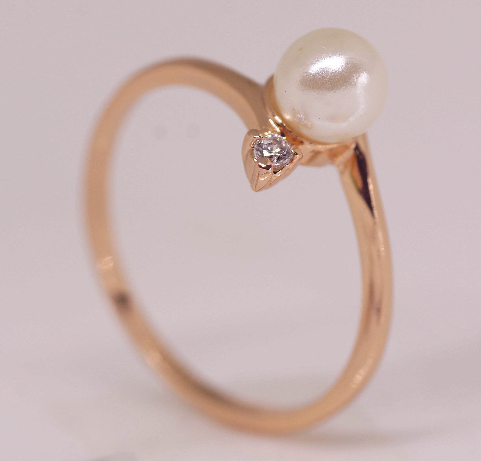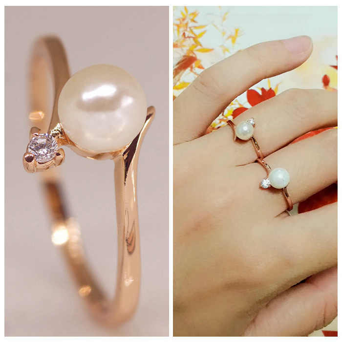 指輪 18K RGP ゴールド ダイヤ CZ パール リング gu1323e
