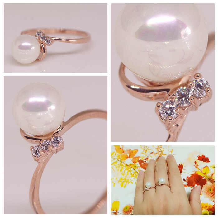 指輪 18K RGP ゴールド ダイヤ CZ パール リング gu1324e