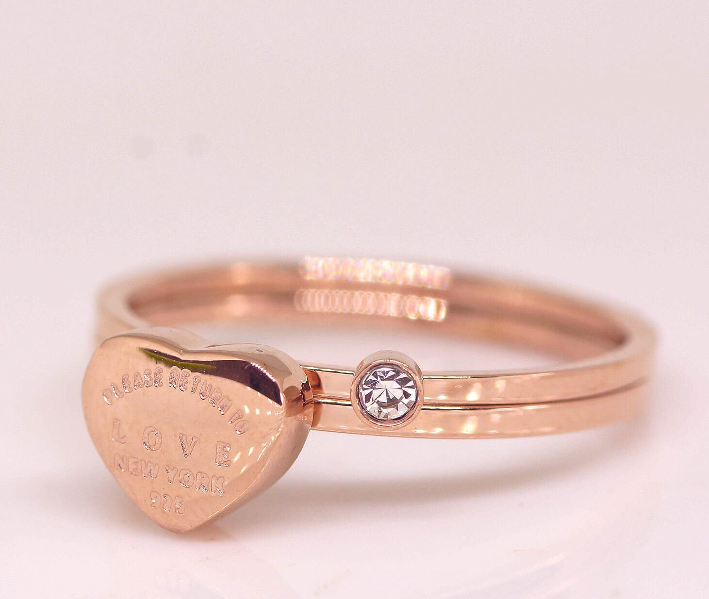 指輪 18K RGP ゴールド 高級 CZ 一粒 ハート セット リング gu1333e