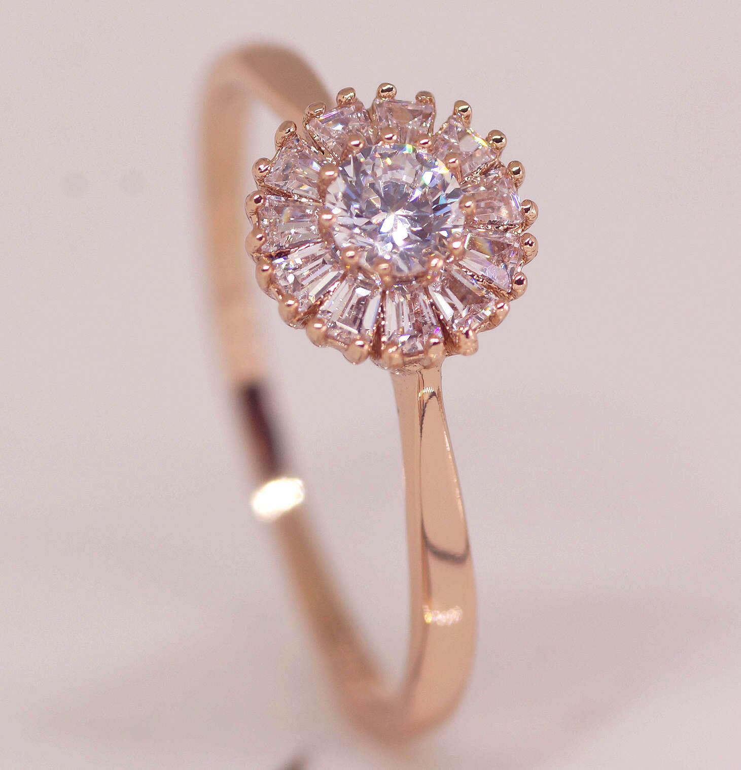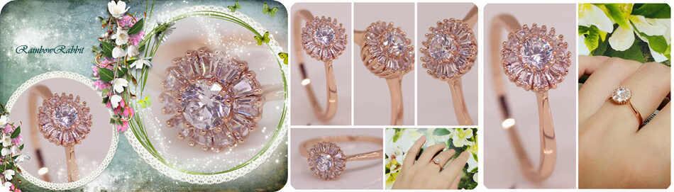 指輪 18K RGP ゴールド ダイヤ CZ フラワー リング gu1336e