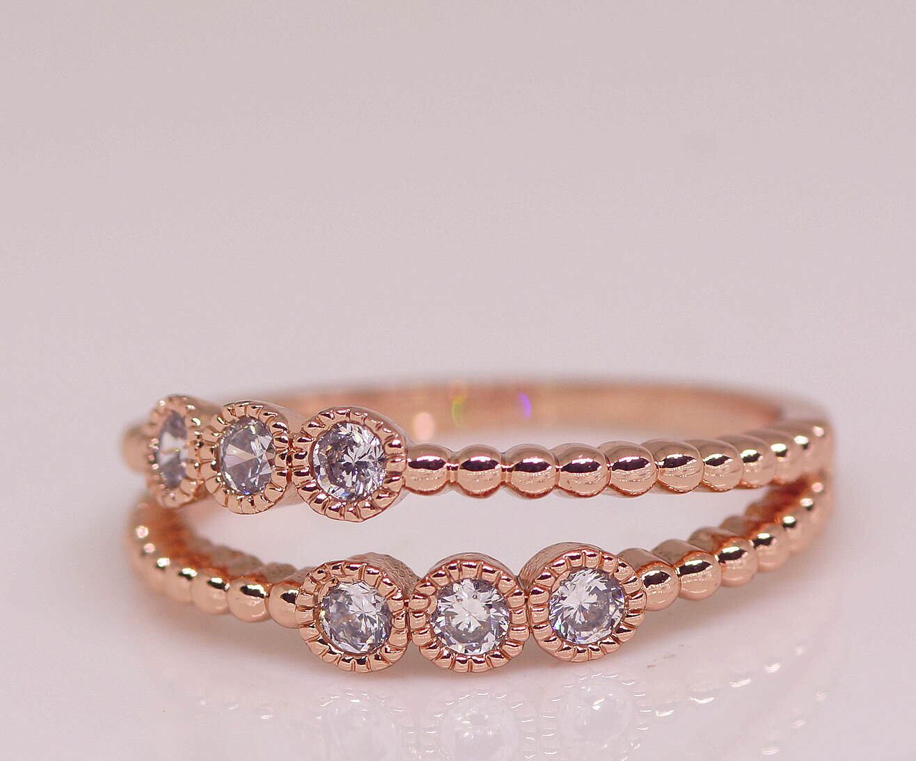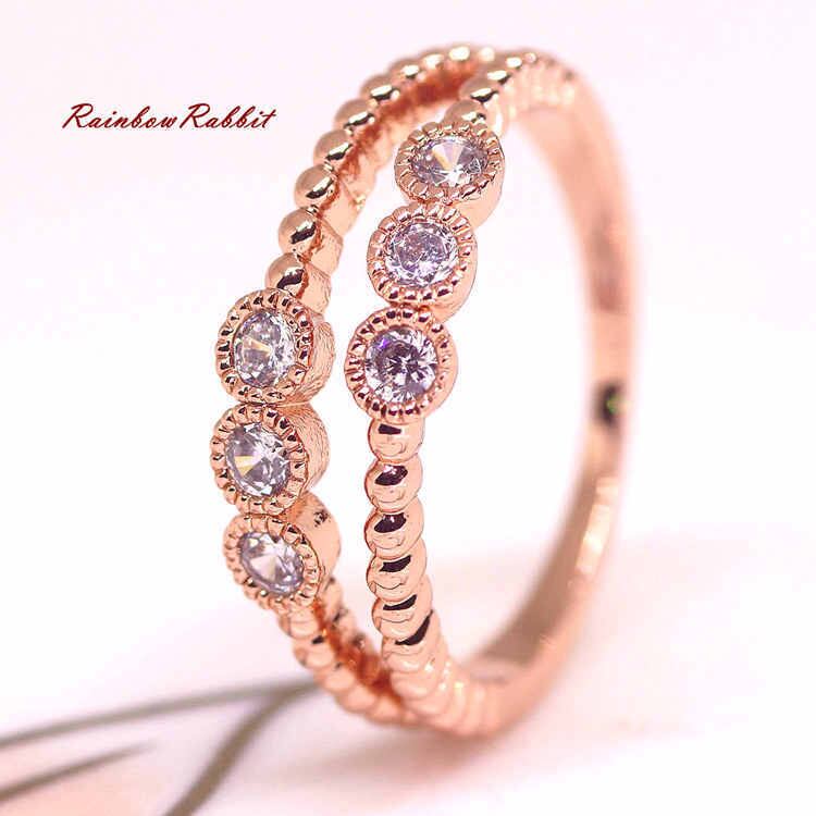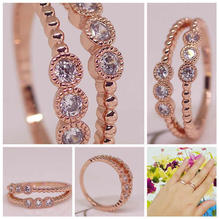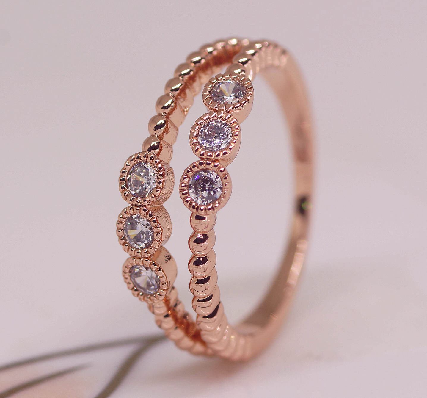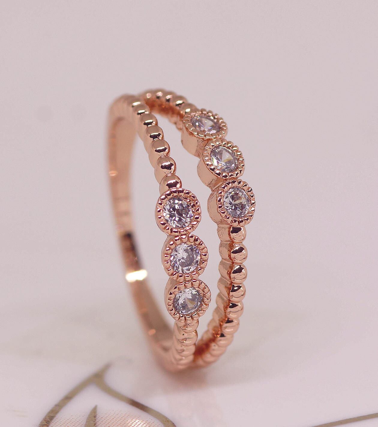 指輪 18K RGP ゴールド 高級 CZ 小粒 2レール リング gu1342e