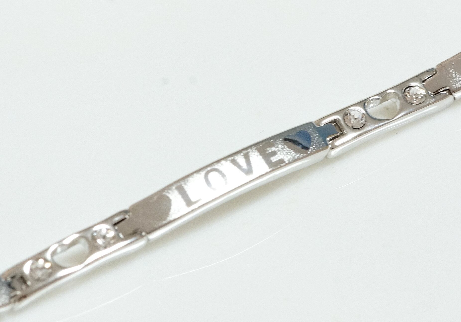 18K RGP プラチナ ダイヤ CZ ハート LOVE ブレスレット yh1127a