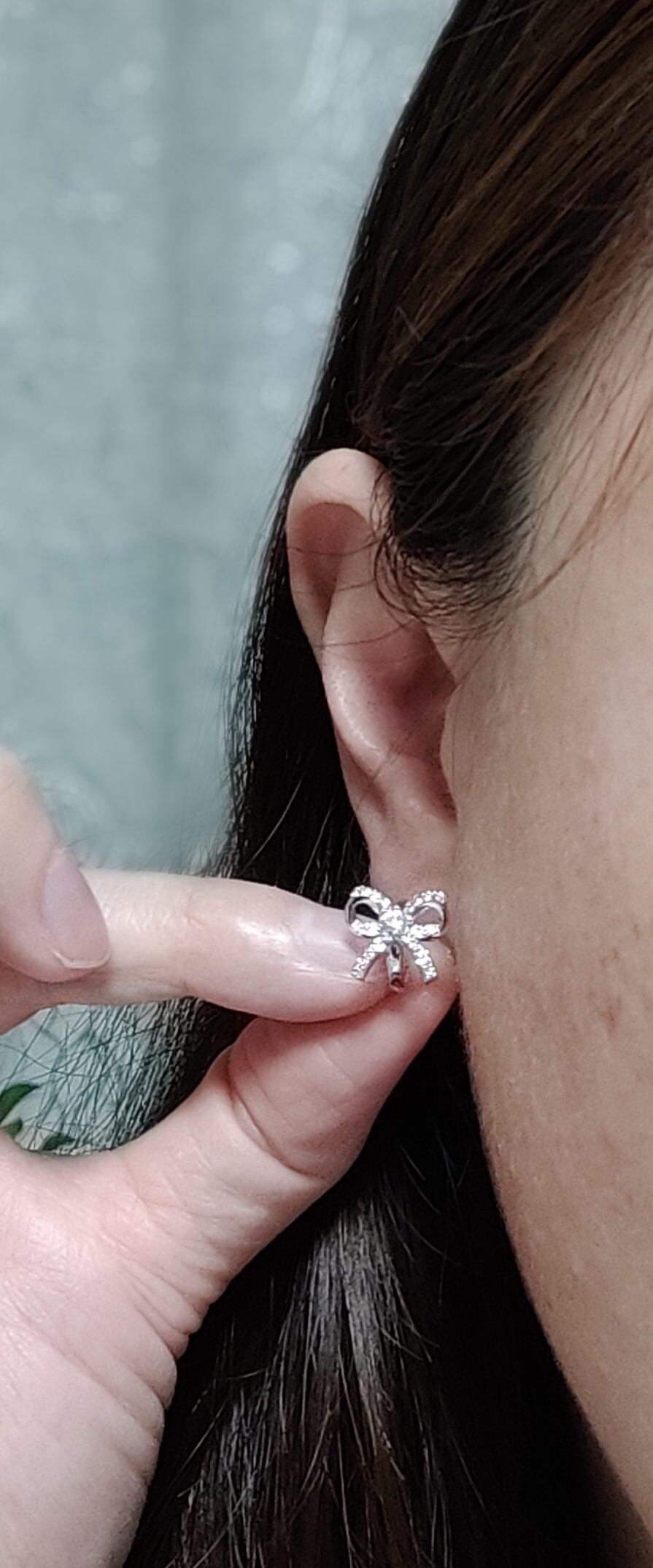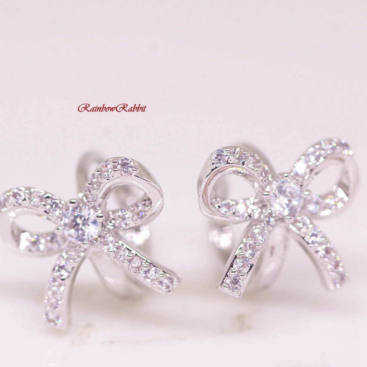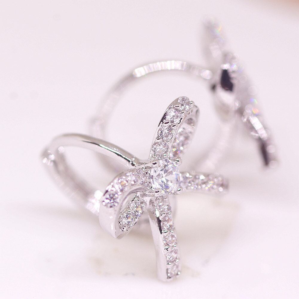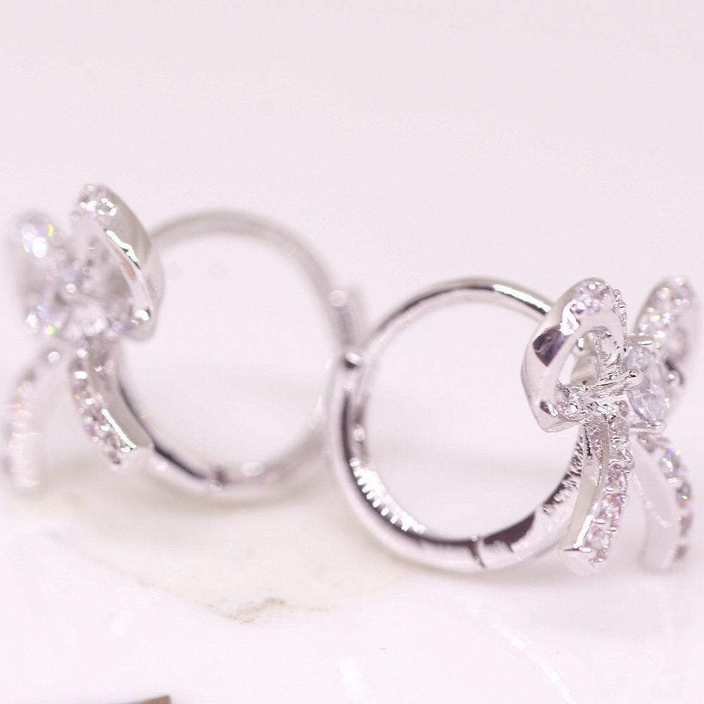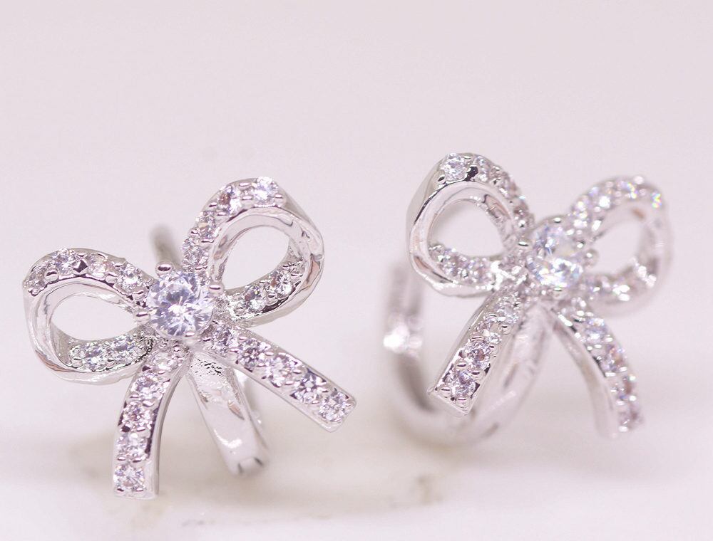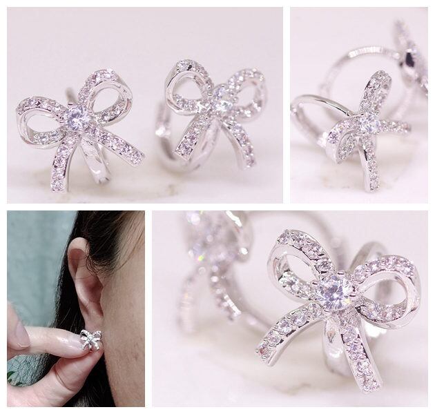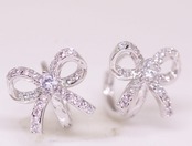 18K RGP プラチナ ダイヤ CZ リボン リング ピアス yp4758